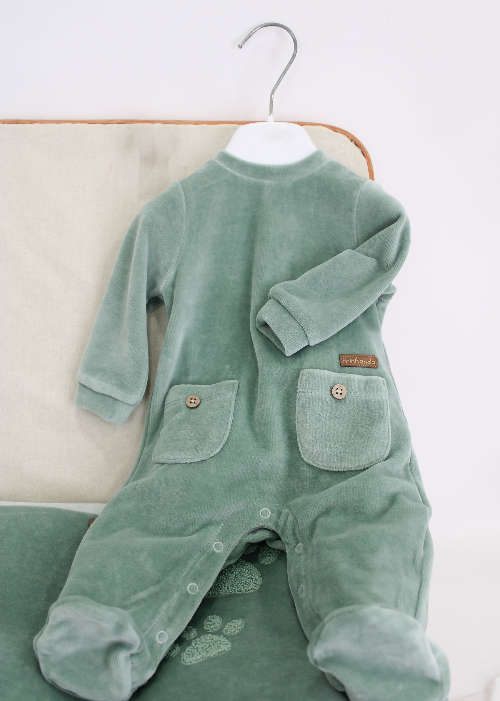 Minibanda Tutina Verde Salvia con Taschine per Neonati
