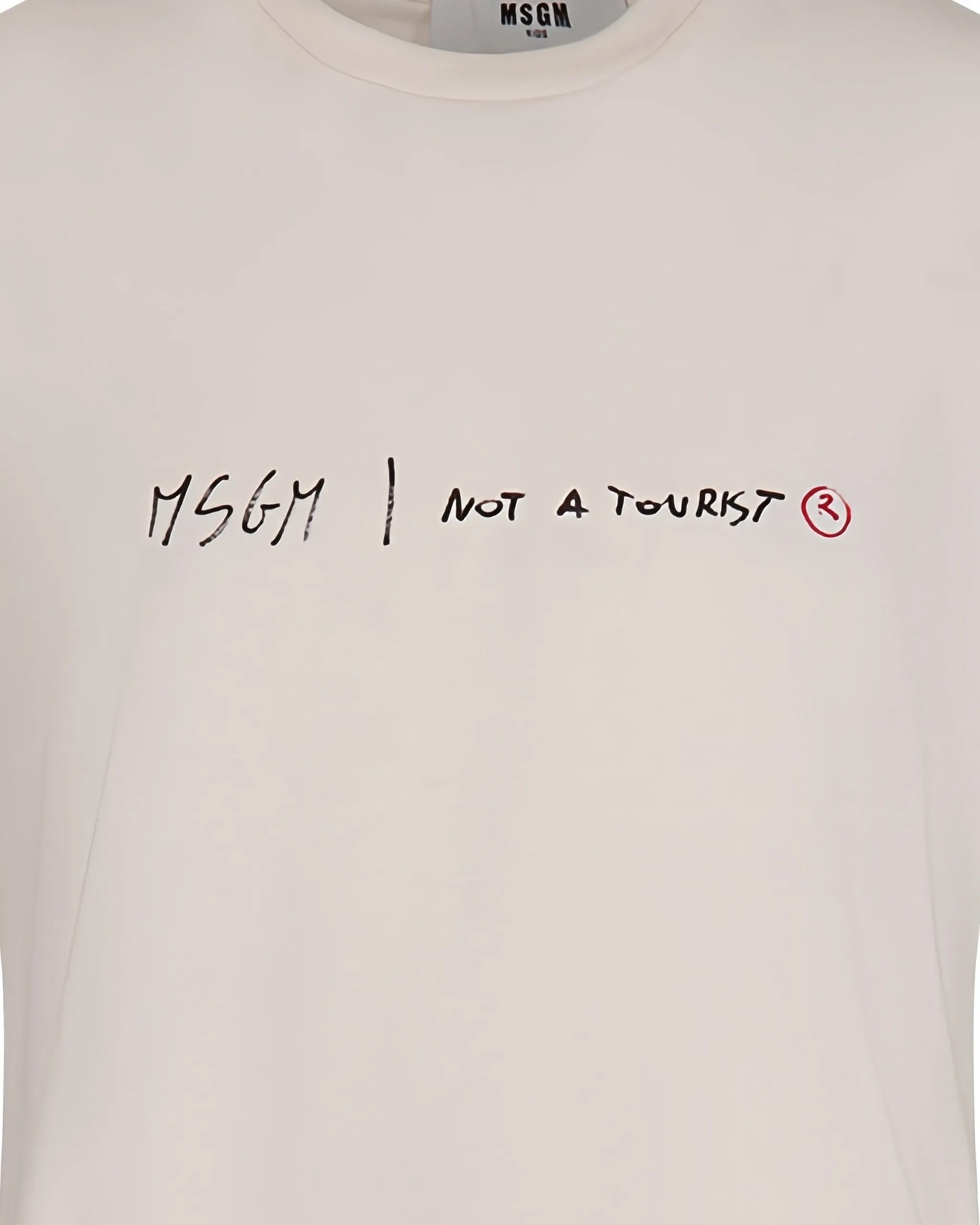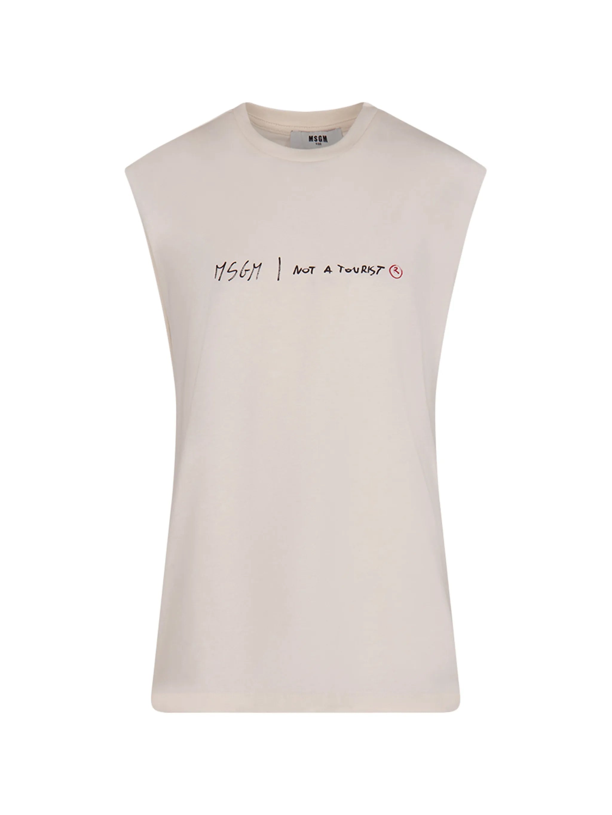 Msgm Kids Canotta Crema con Stampa Logo per Bambine
