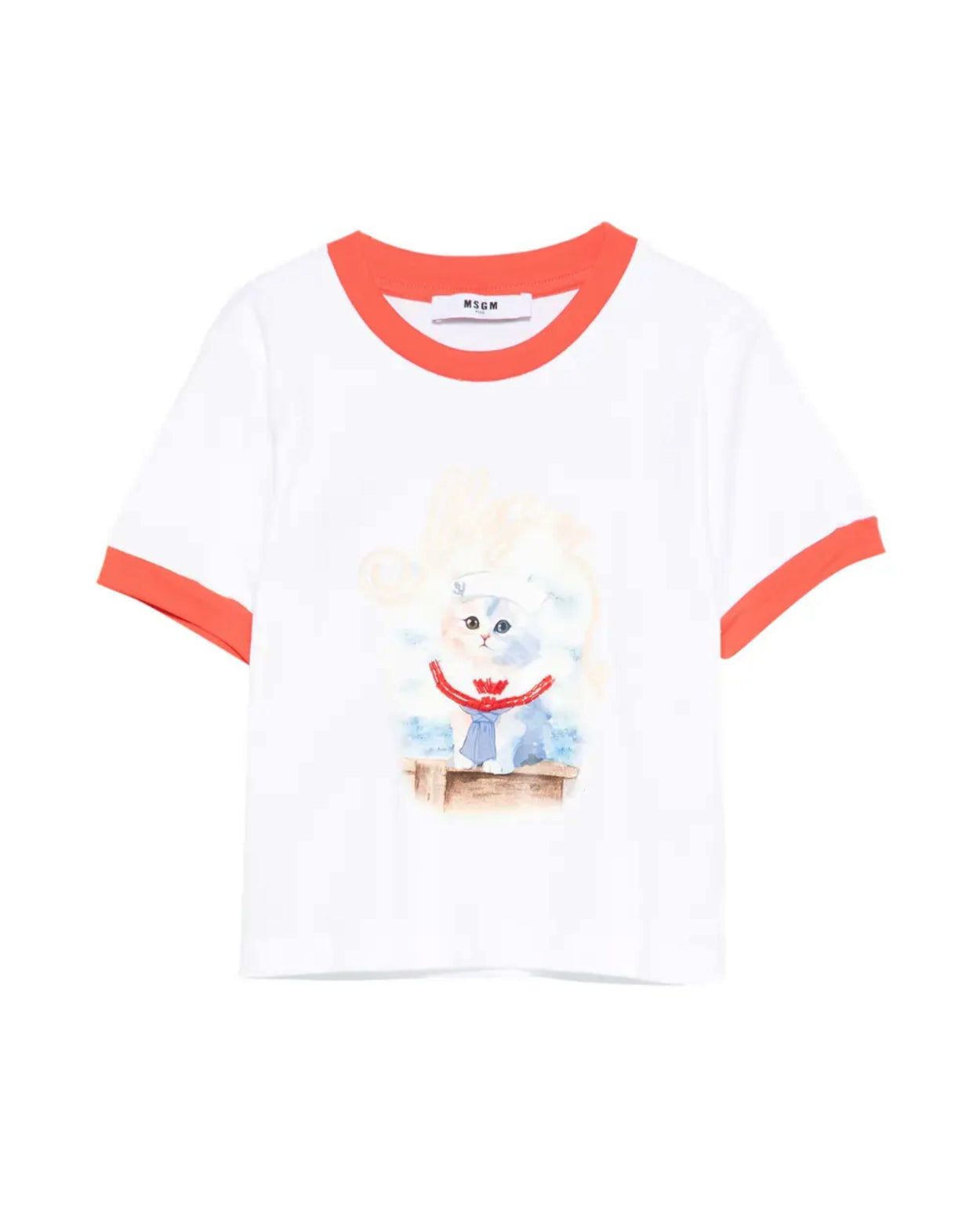 Msgm Kids T-Shirt Bianco/Corallo con Stampa per Bambine