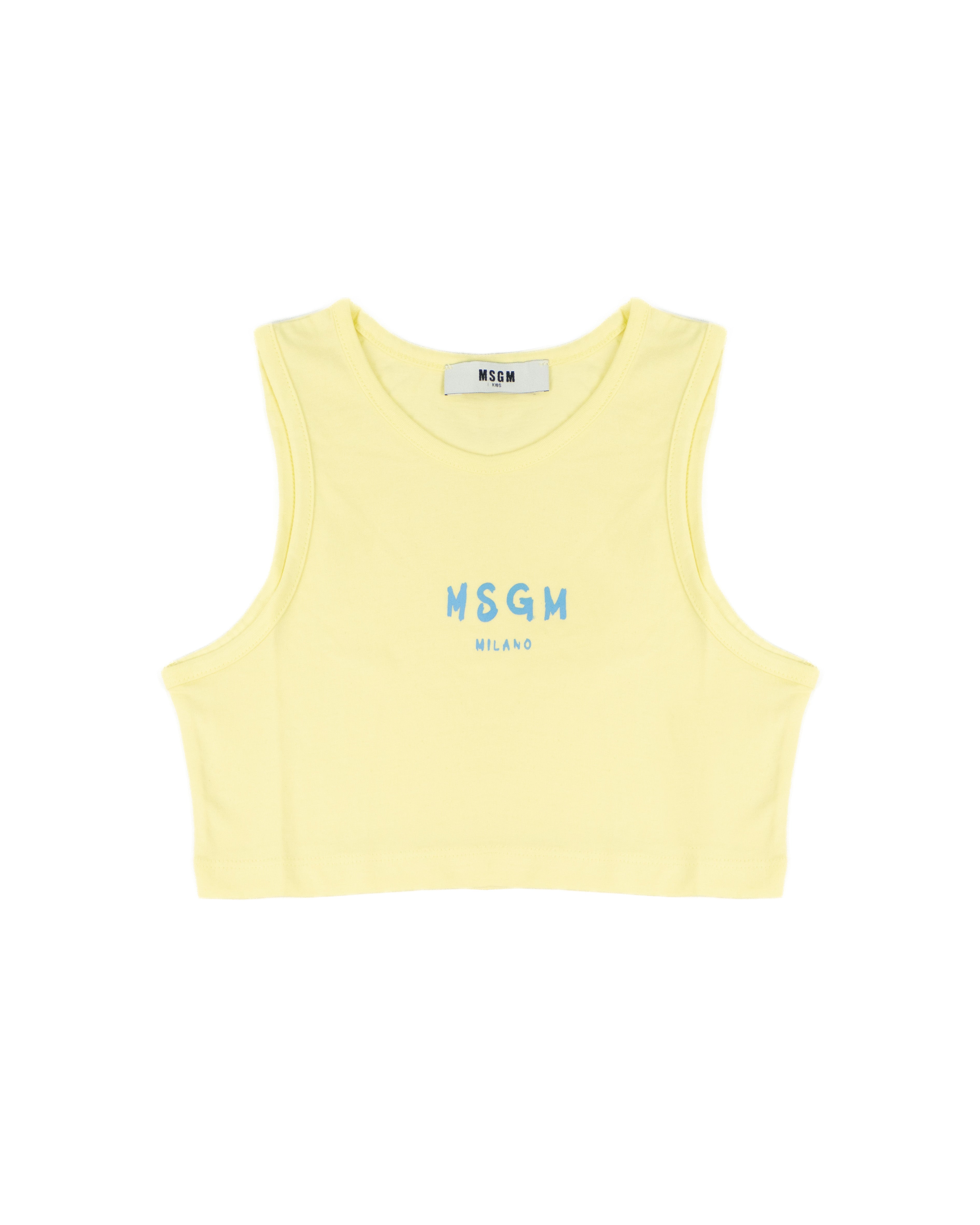 Msgm Kids Top Giallo con Logo Sampato per Bambine