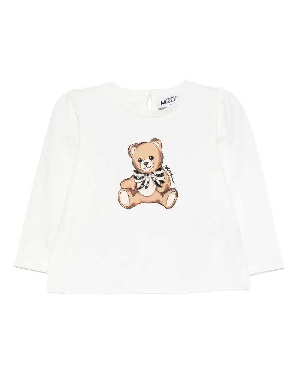 Moschino Kids T-Shirt Manica Lunga Panna con Teddy per Neonate