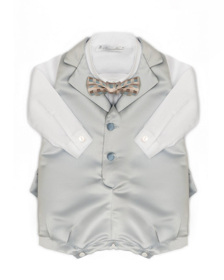 Barcellino Kids ompleto 3 pezzi Grigio con Camicia Gilet e Papillon per Neonati