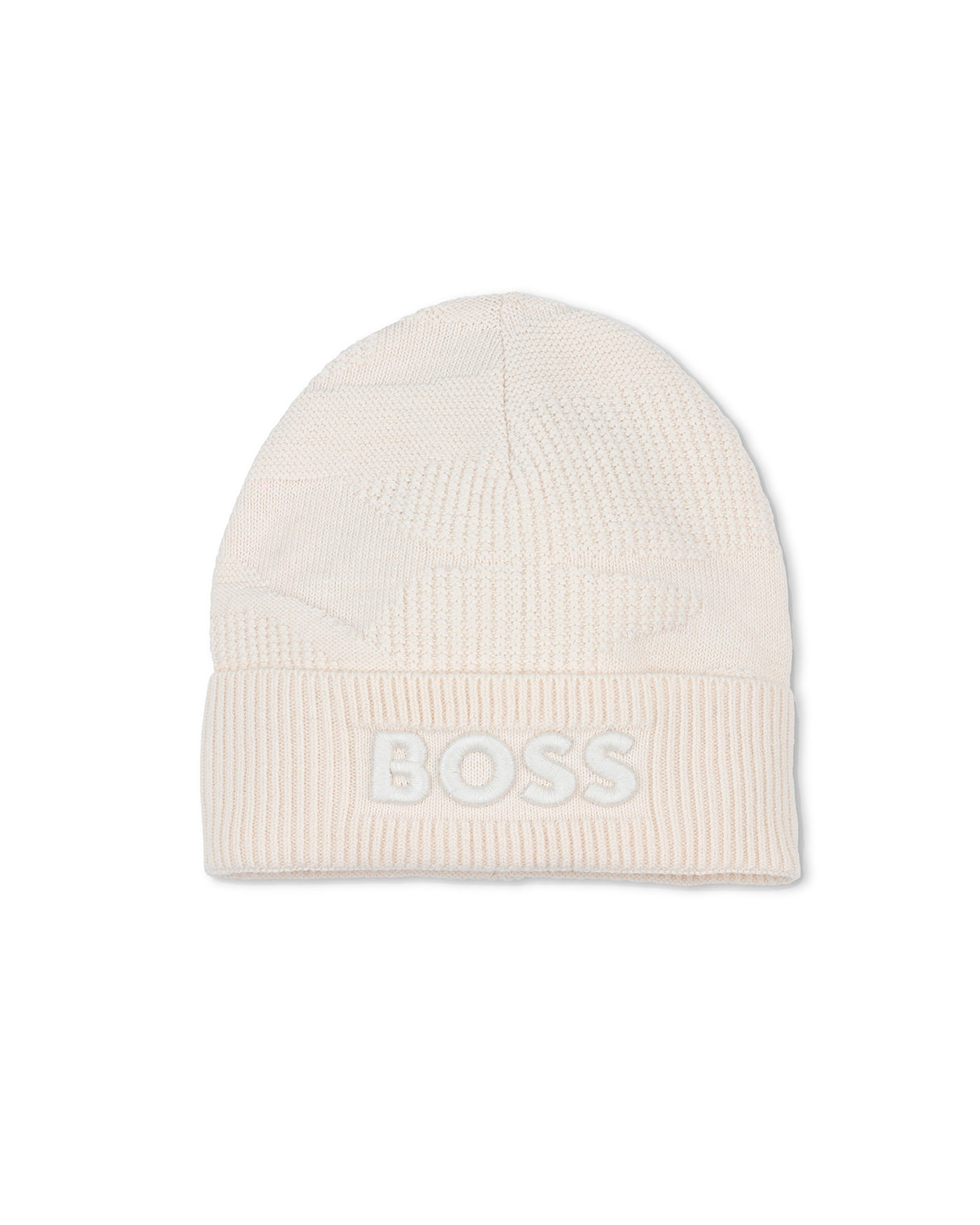 Il cappello in cotone color sabbia BOSS Kids per neonati combina eleganza e calore in un design essenziale e raffinato.