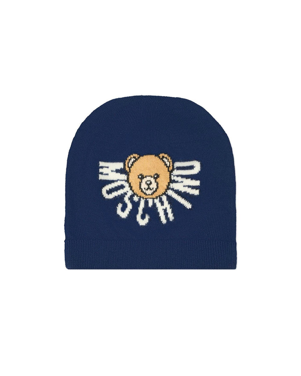 Moschino Kids Cappello Blu Navy con Logo Teddy per Neonati