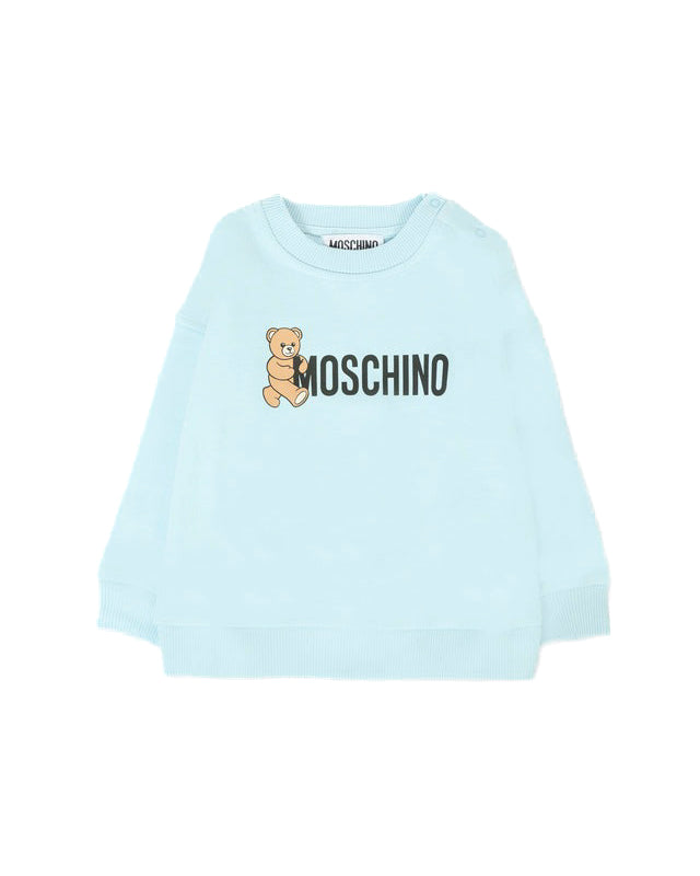 Moschino Kids Felpa Girocollo Celeste con Logo per Neonati