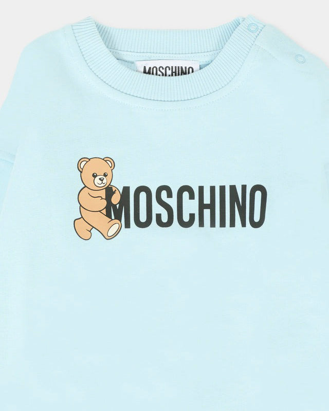 Moschino Kids Felpa Girocollo Celeste con Logo per Neonati - Florence Kids