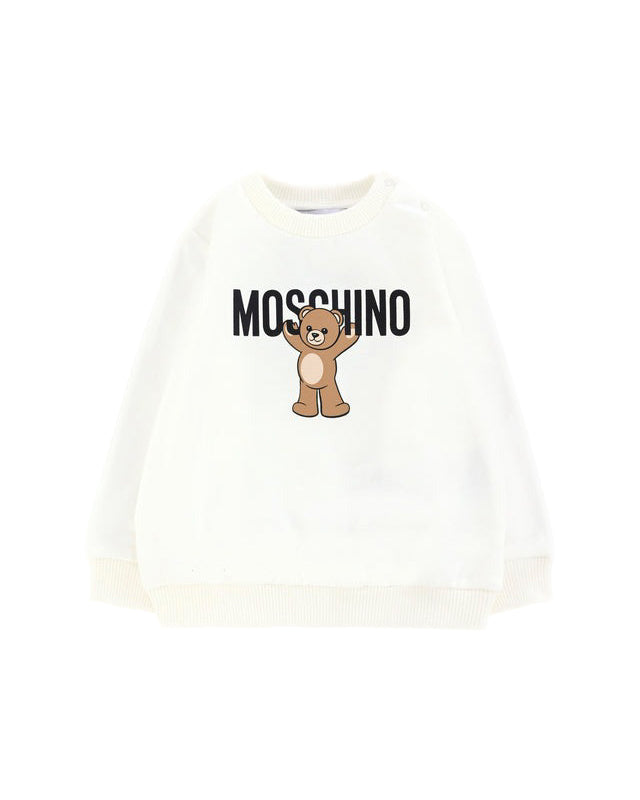 Moschino Kids Felpa Girocollo Panna con Logo per Neonati