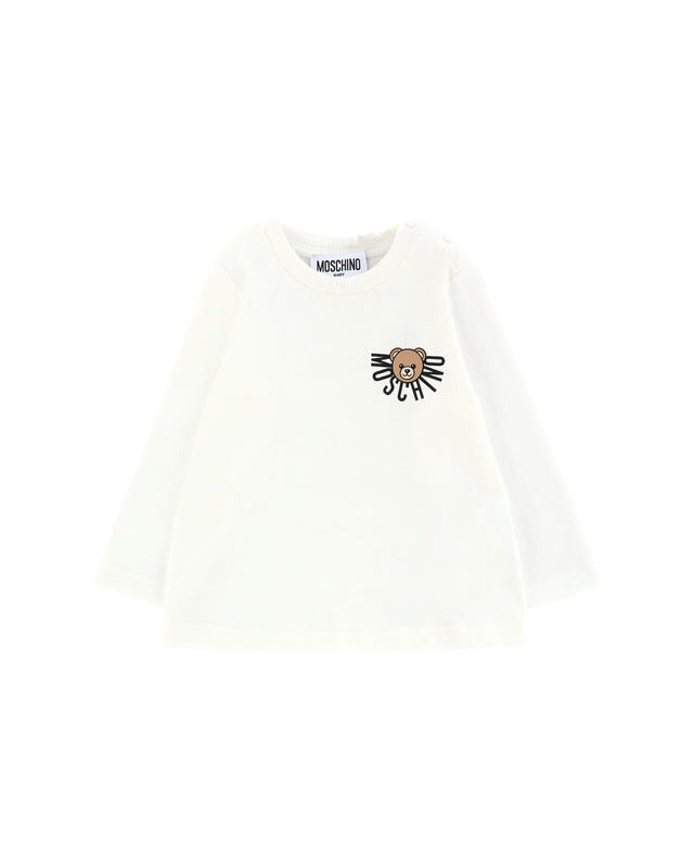 Moschino Kids T-shirt Panna con Logo per Neonati
