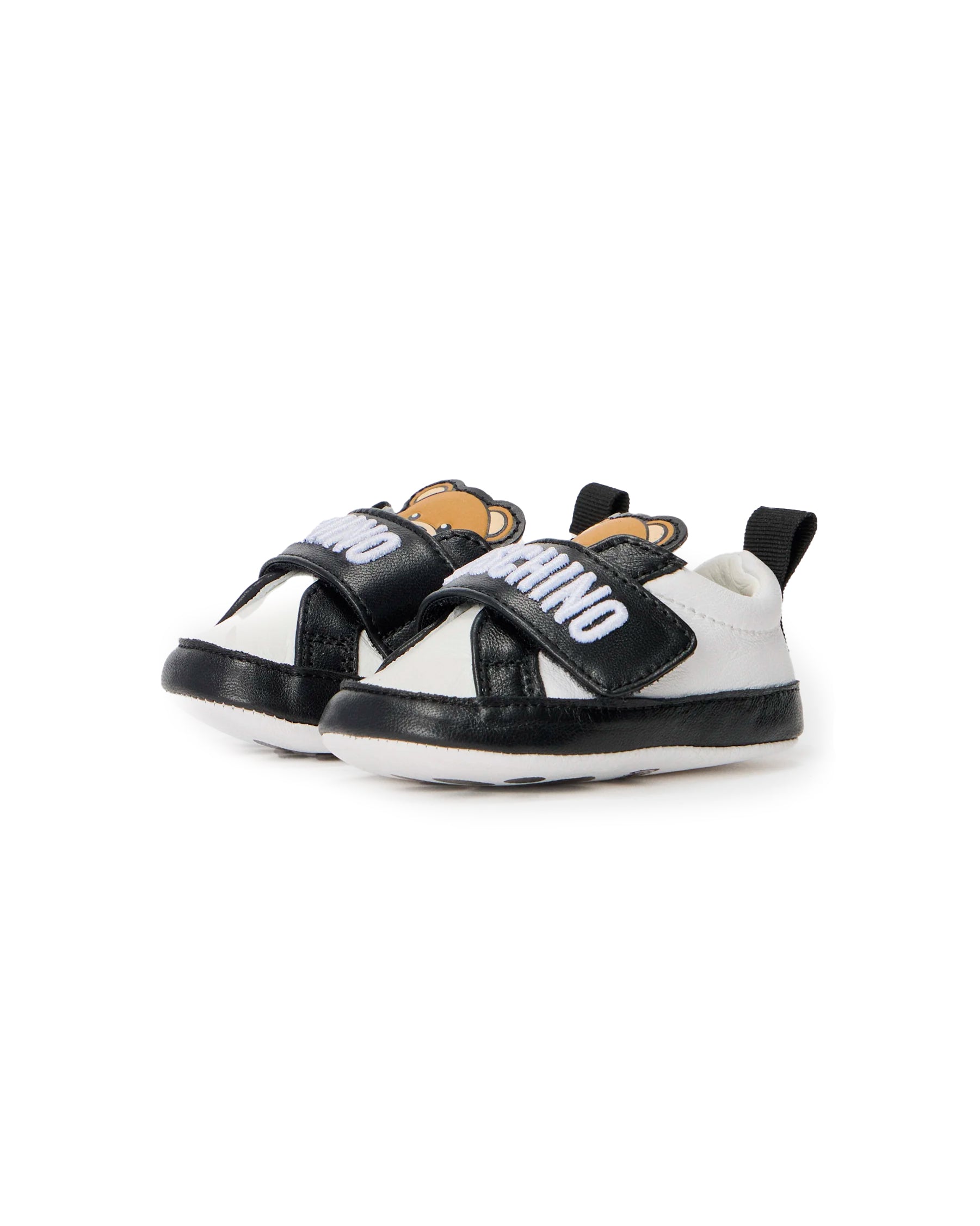 Scopri le Moschino Kids scarpette con strappo per neonati, un mix ideale di praticità e stile firmato Moschino.