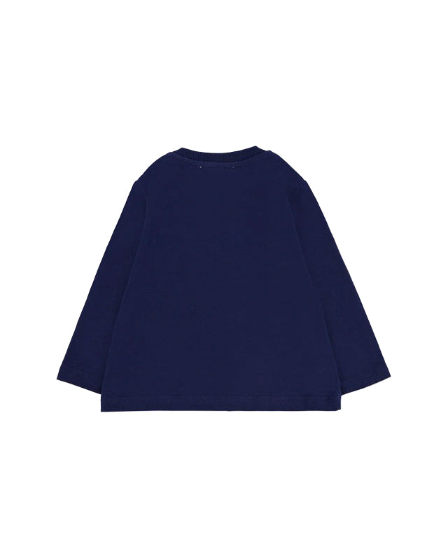 La t-shirt blu navy Moschino Kids per neonate, realizzata in cotone biologico morbido, è pensata per garantire comfort ed eleganza fin dai primi mesi. Il design presenta un girocollo a costine e maniche lunghe, mentre la chiusura con bottoni automatici sulla spalla agevola il cambio in modo pratico e sicuro.