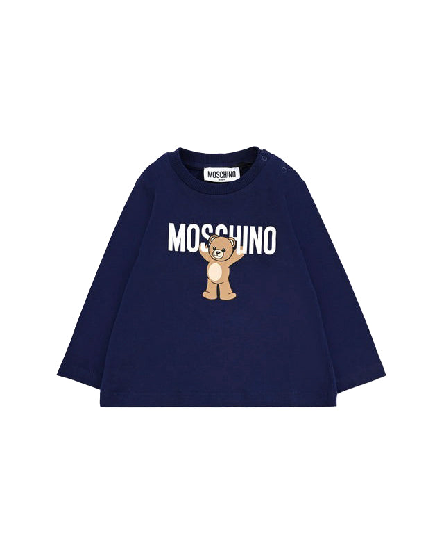 Moschino Kids T-Shirt Blu Navy con Logo per Neonati