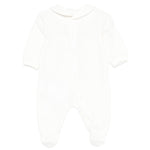 La tutina panna Moschino Kids è un capo lungo elegante e confortevole, perfetto per le prime giornate dei neonati. Realizzata in cotone morbido, offre massima delicatezza sulla pelle sensibile. Il design presenta una doppia stampa orsetto Teddy Bear sul fronte, che aggiunge un tocco giocoso e raffinato.