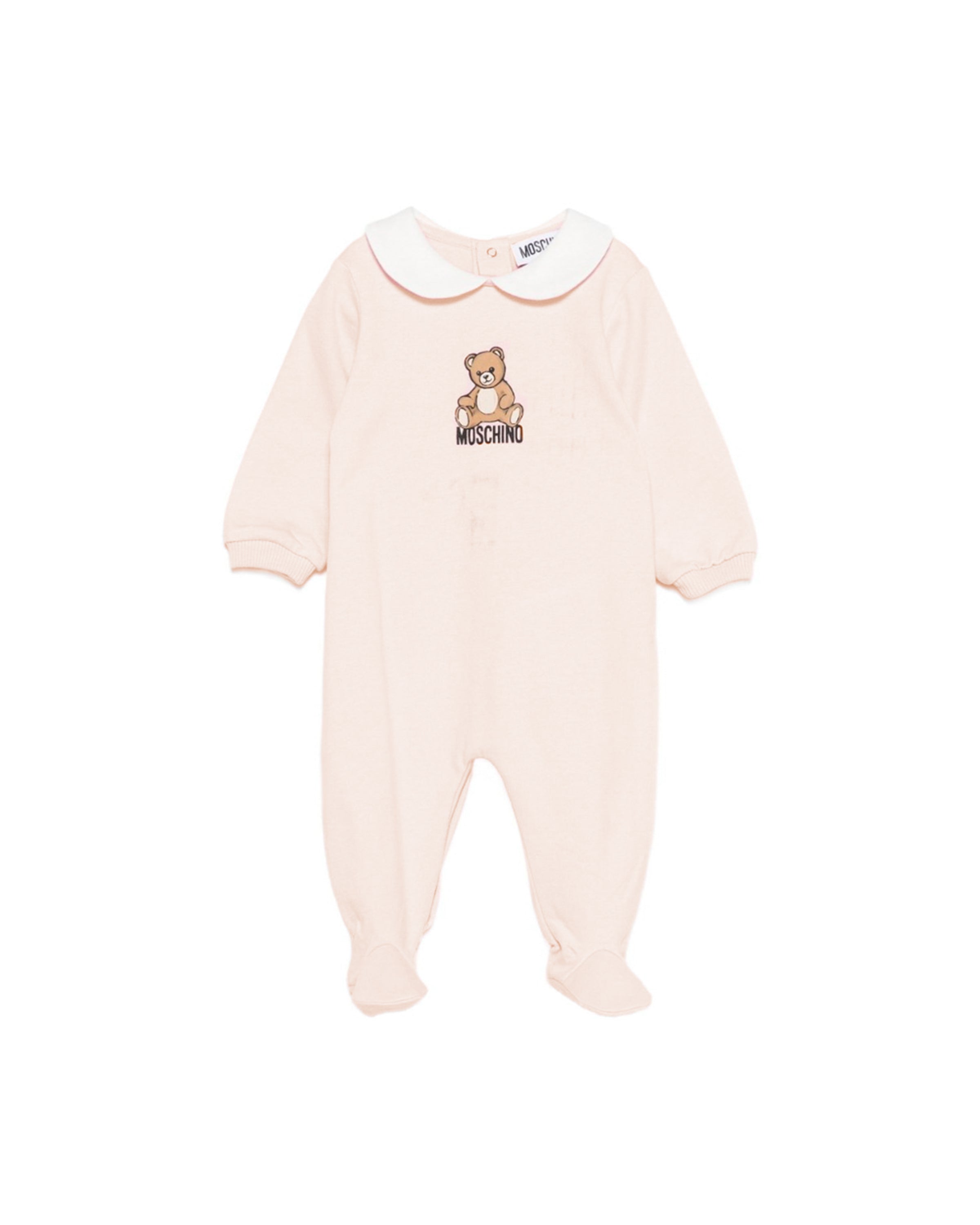 Elegante, confortevole e facile da abbinare: questa tutina è perfetta come regalo di nascita o per i primi look firmati Moschino.