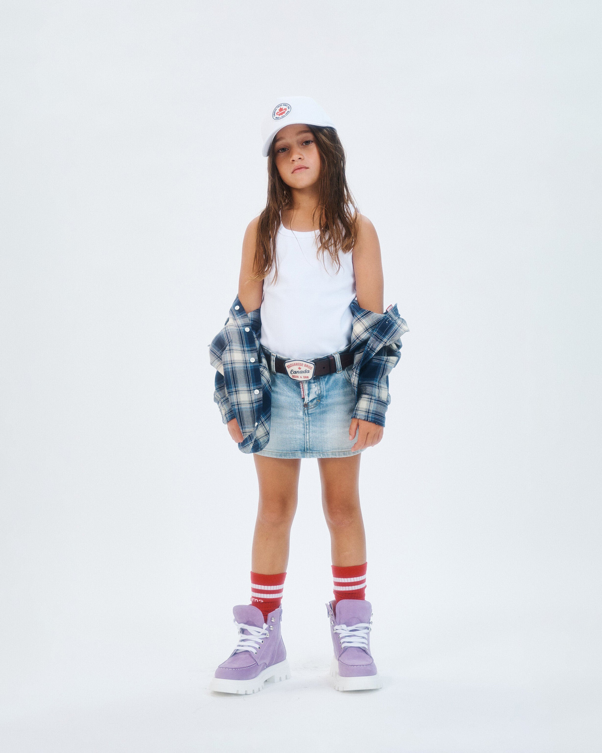 Dsquare2 Kids Gonna in Denim con Tasca Retro Effetto Pelle per Bambine