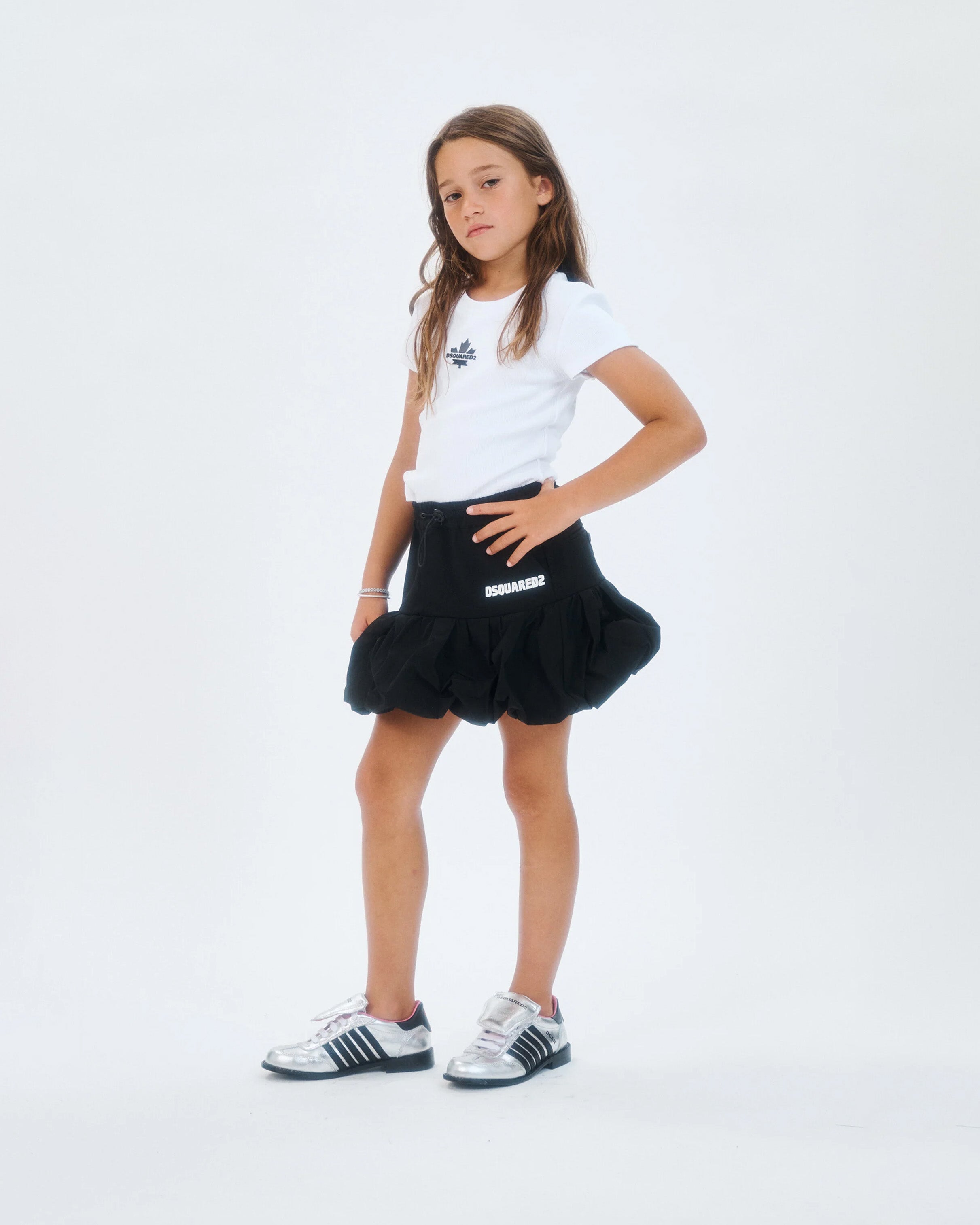 Dsquared2 Kids Gonna Plisettata Nera con Dettaglio Scritta Logo a Contrasto per Bambine