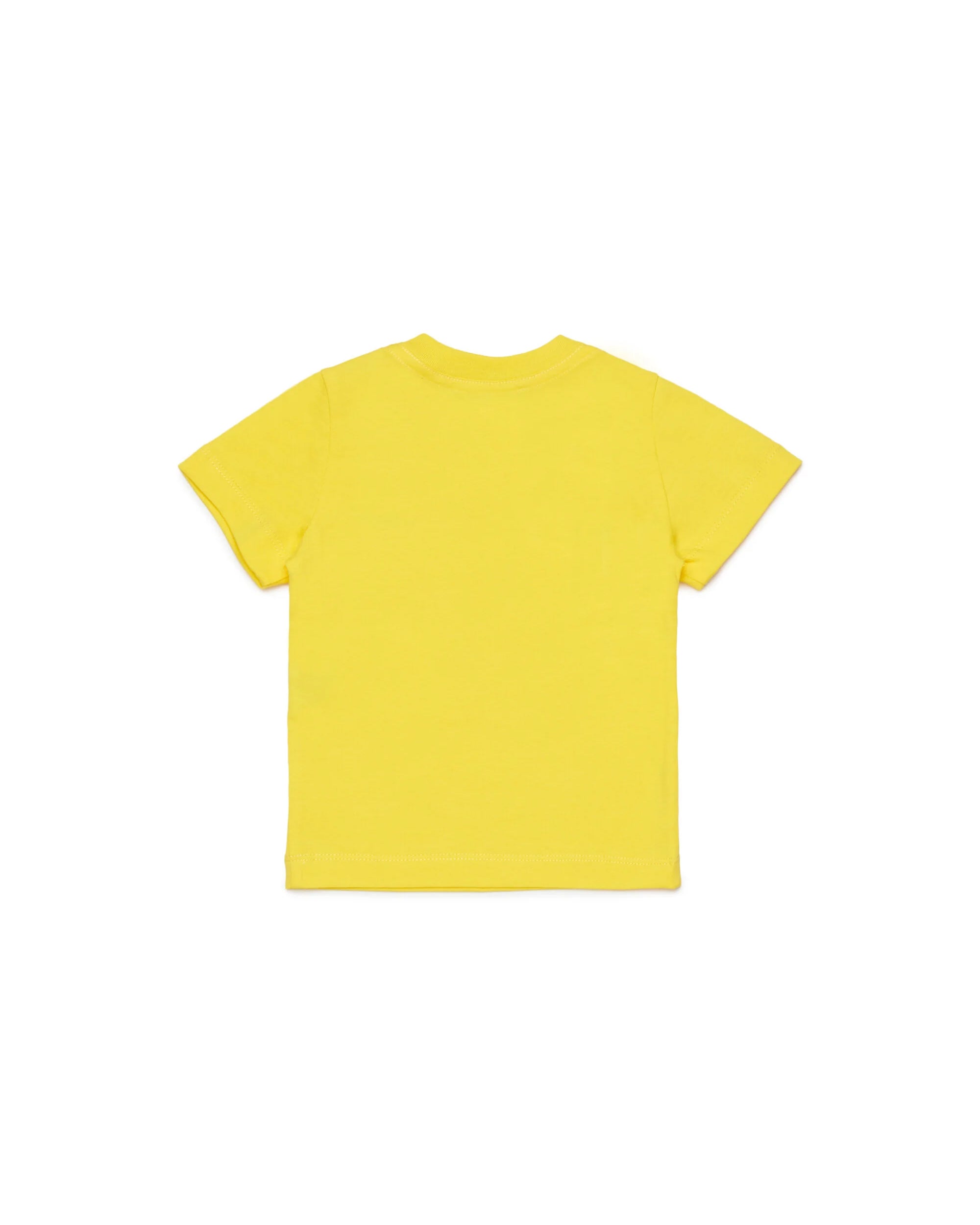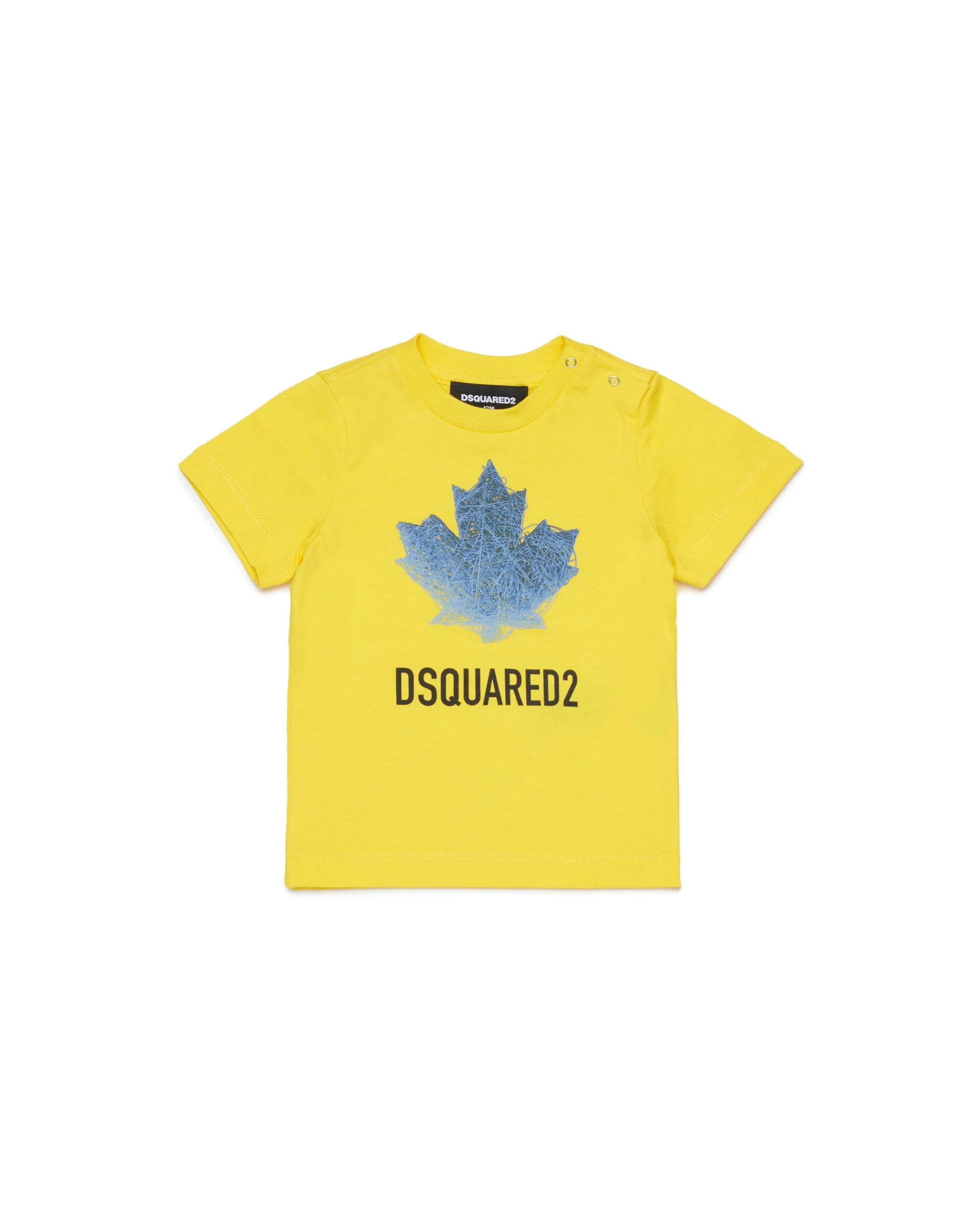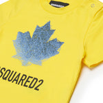 Dsquared2 Kids T-Shirt Gialla con Stampa Logo Foglio D'acero con Apertura Bottoni Spalla per Neonati