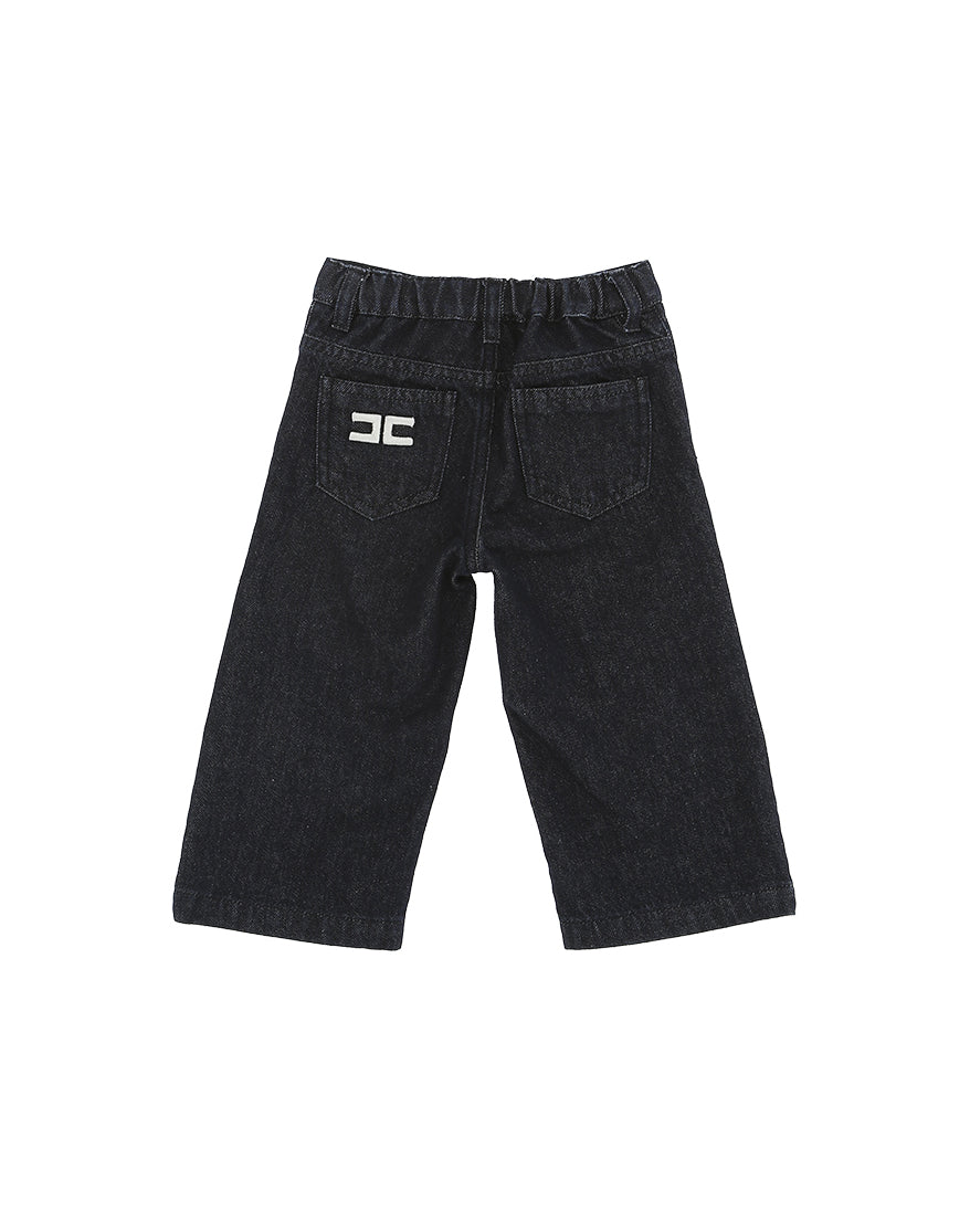 Elisabetta Franchi La Mia Bambina Denim Scuro con Dettaglio Logo Retro per Neonate