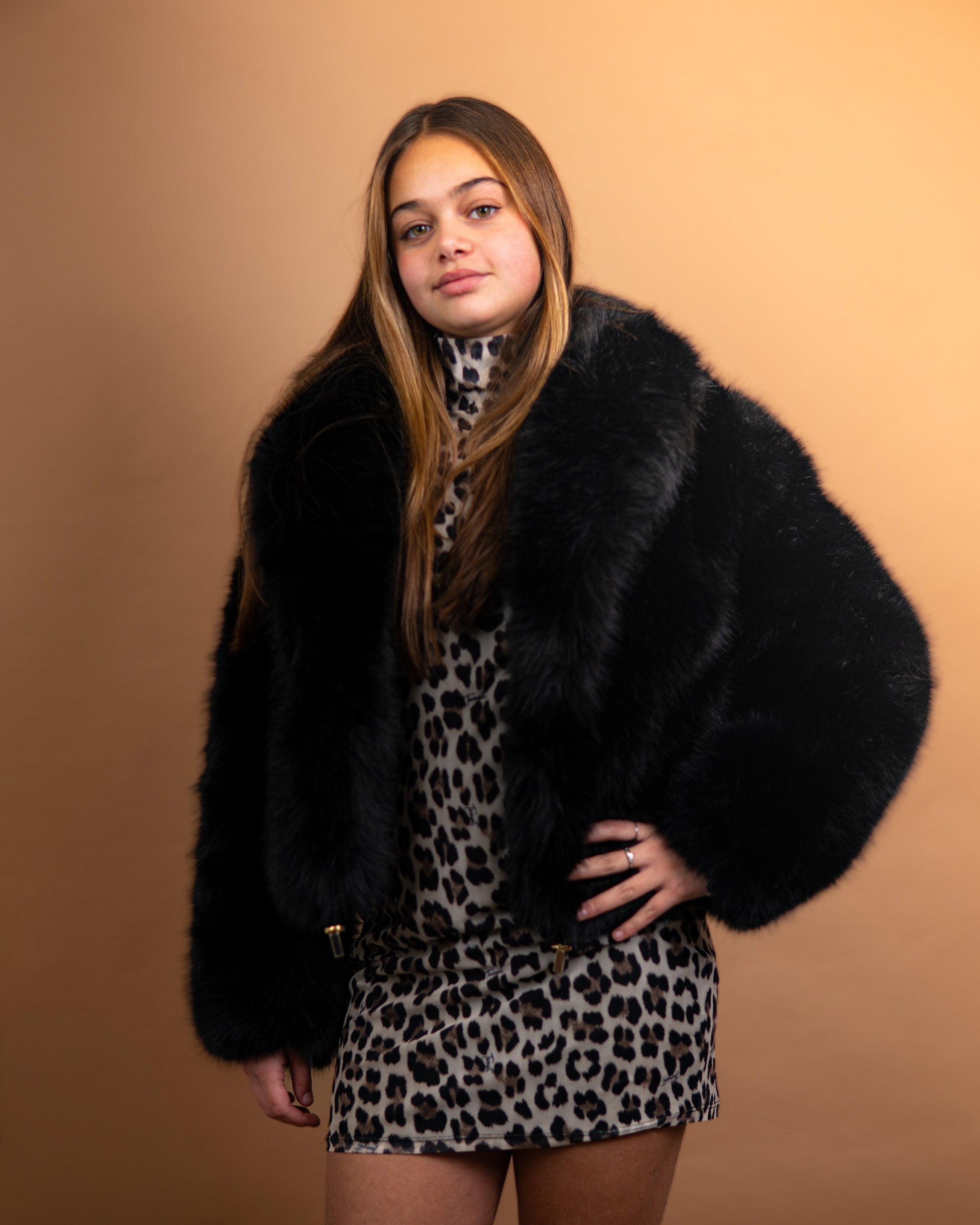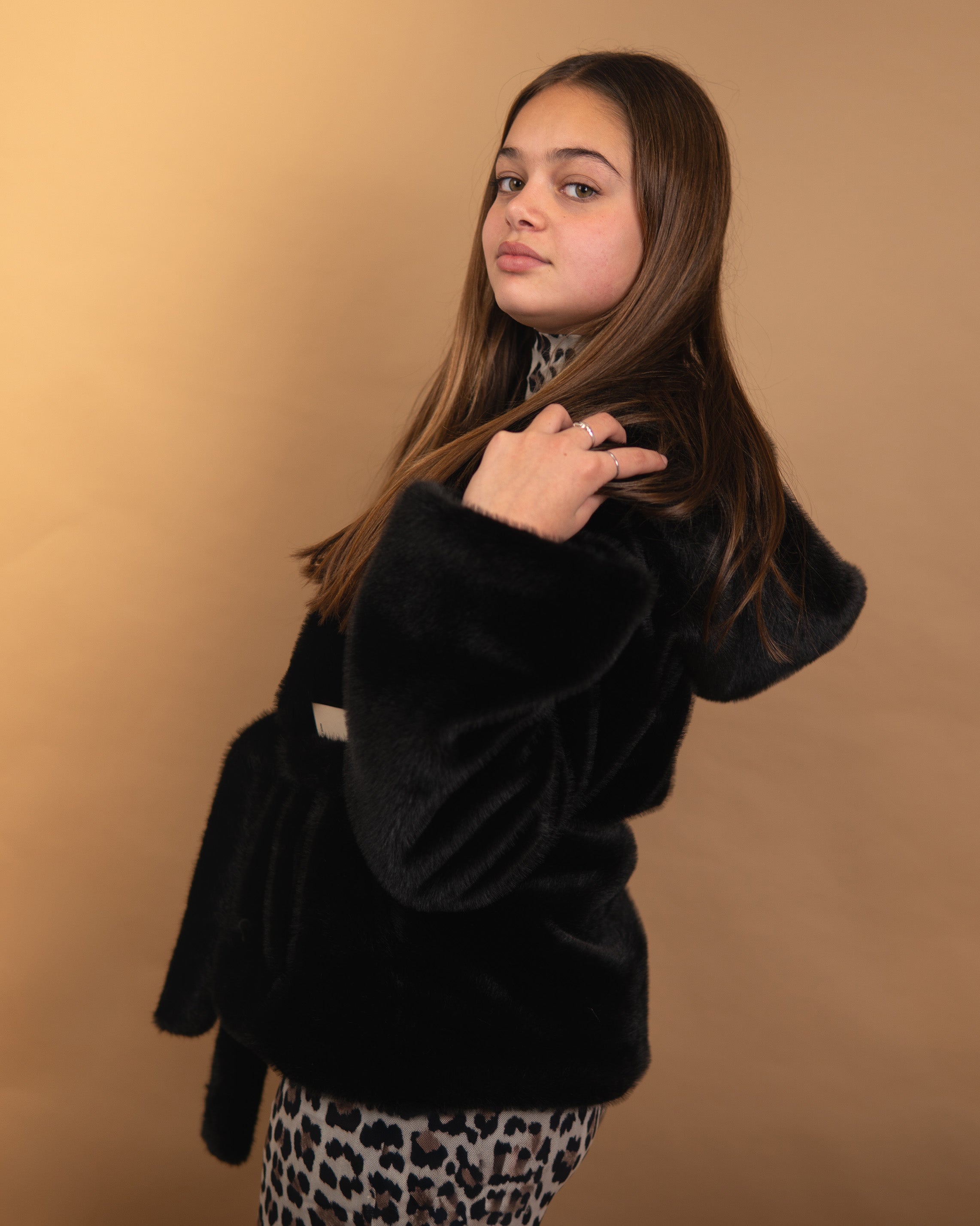 Yes London Kids Giacca Ecovolpe Nera collo sciallato per Bambine - Florence Kids