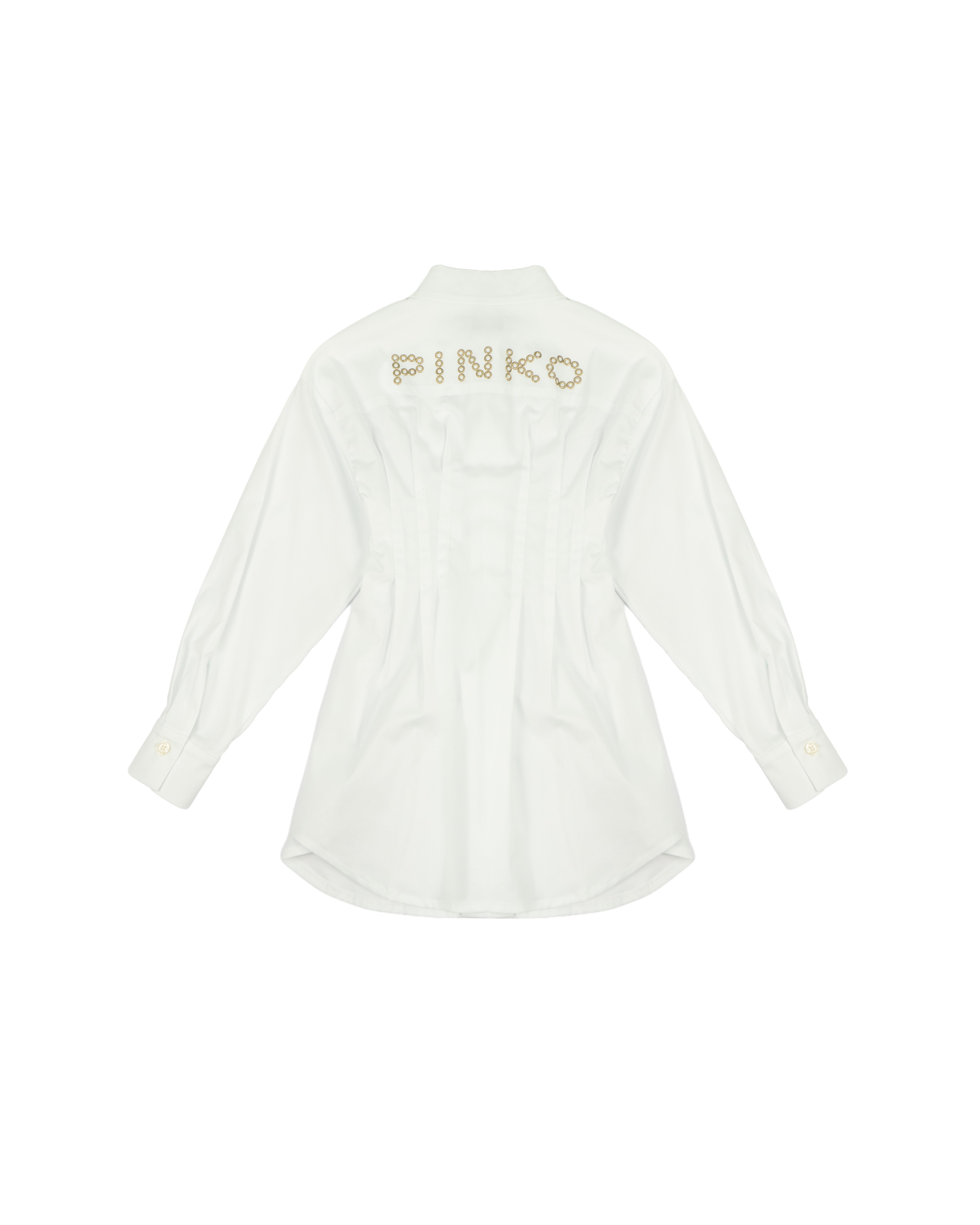 Pinko Kids Camicia Bianca a Bustino con Applicazione Logo in Oro sul Retro per Bambine