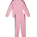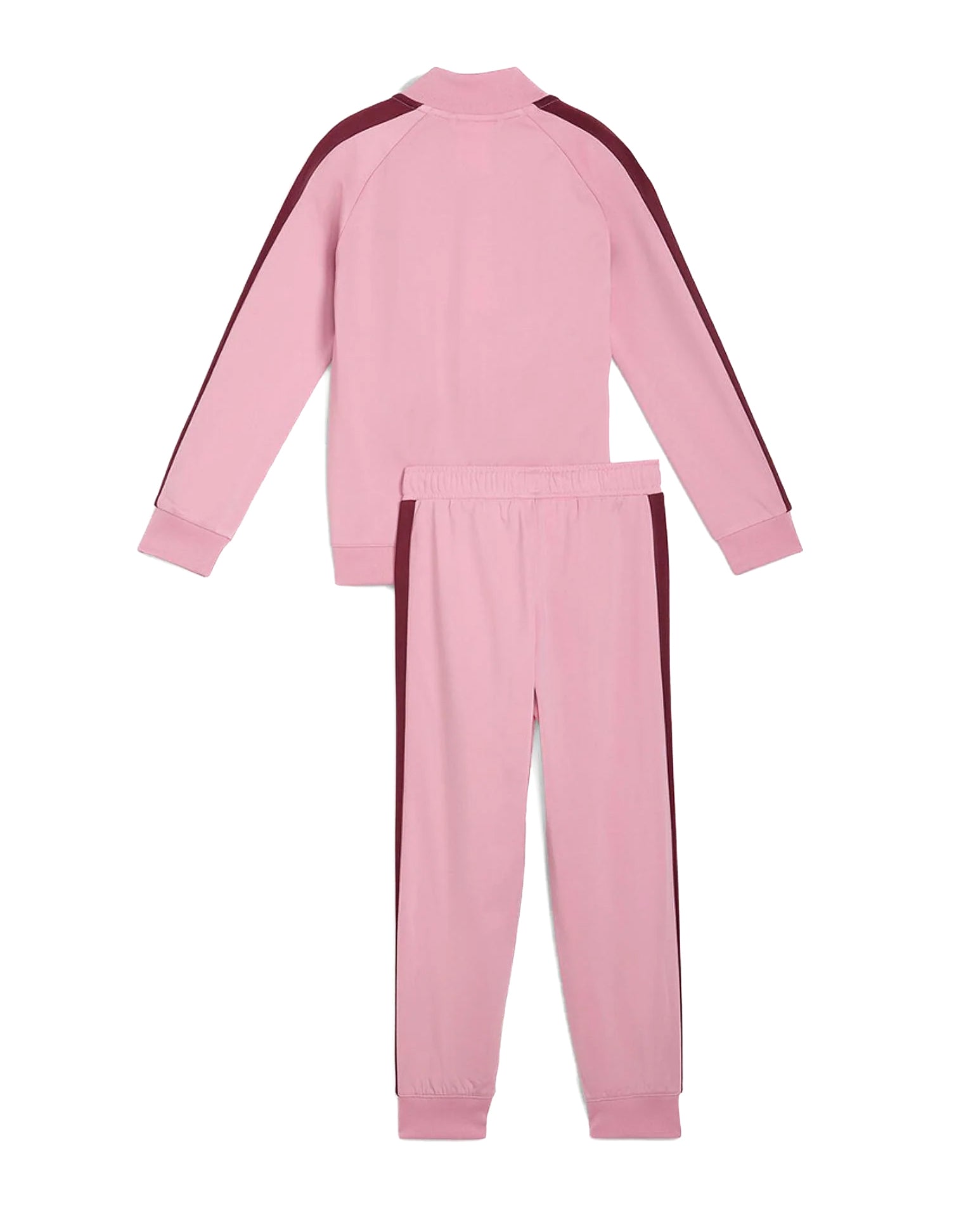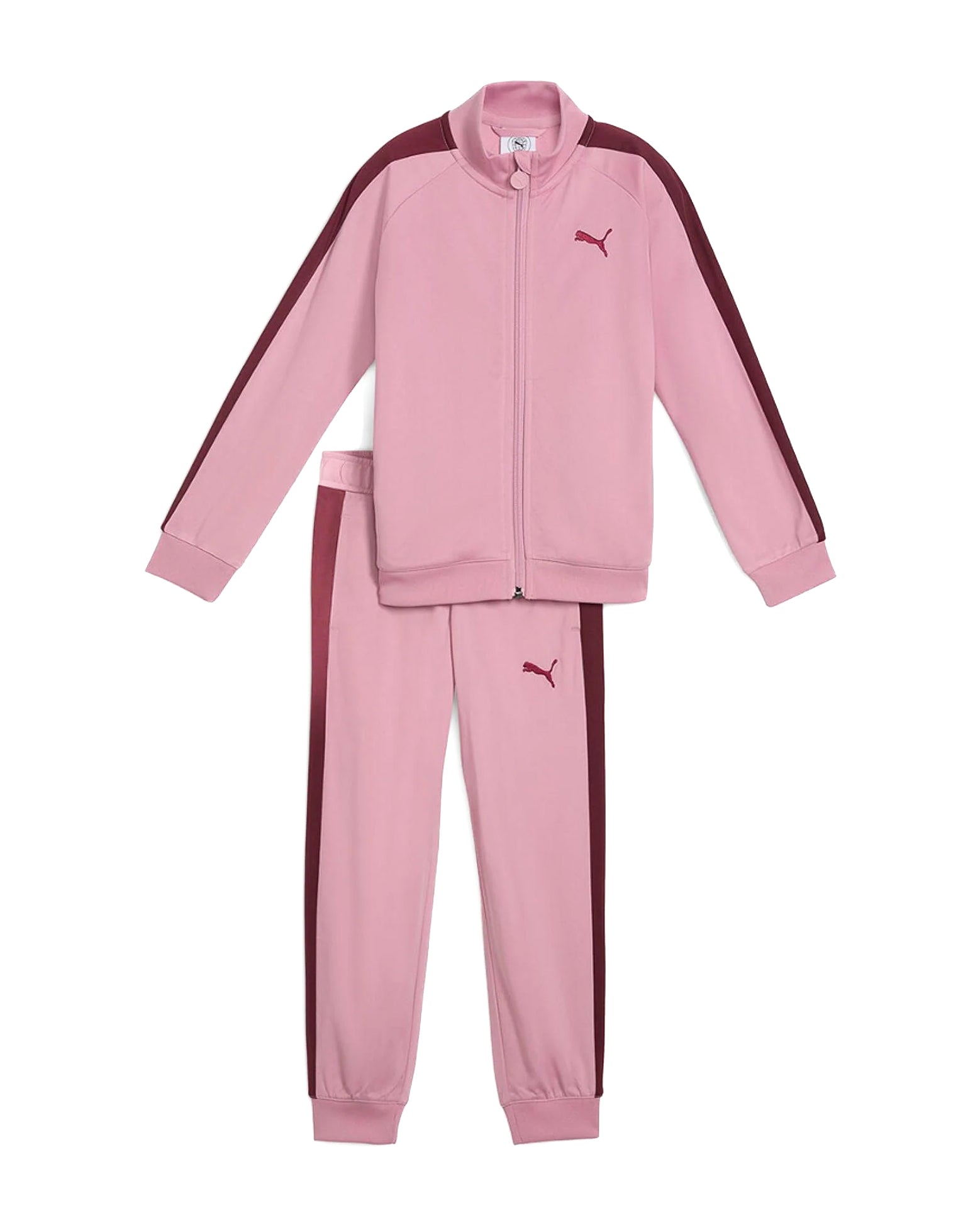 Il completo di tuta Puma Kids rosa con bande laterali bordeaux è perfetto per le bambine che amano il comfort senza rinunciare allo stile. Composto da felpa con zip e colletto alto e pantaloni coordinati con vita elasticizzata, è realizzato in tessuto tecnico morbido e traspirante. Ideale per scuola, sport e tempo libero.