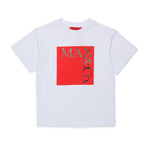 Max & Co T-Shirt Bianca con Logo Stampato in Rosso per Bambine