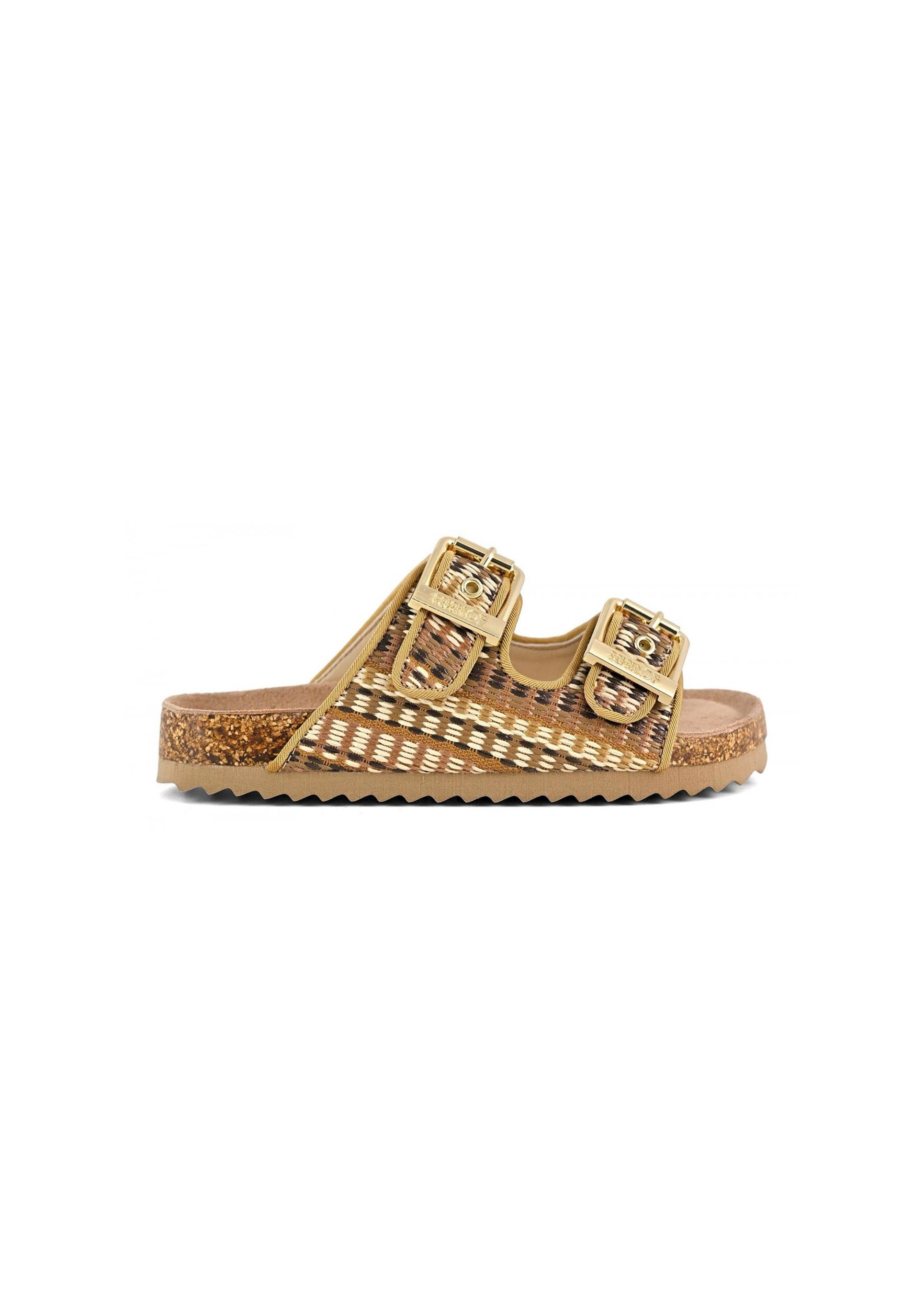 Il Sandalo Doppia Fascia Natural o con Strass di Colors of California, disponibile su Florence Kids presenta una tomaia in denim di cotone con profili sfrangiati, aggiungendo un tocco grintoso. Il soletto è in pelle per un comfort superiore, mentre la doppia fibbia coordinata garantisce una vestibilità sicura. Strass in due colori decorano i sandali, conferendo un look audace e rock perfetto per abbinamenti con capi in pelle o denim. Questi sandali incarnano perfettamente l'unione tra raffinatezza e comodità, progettati esclusivamente per le piccole eleganti.