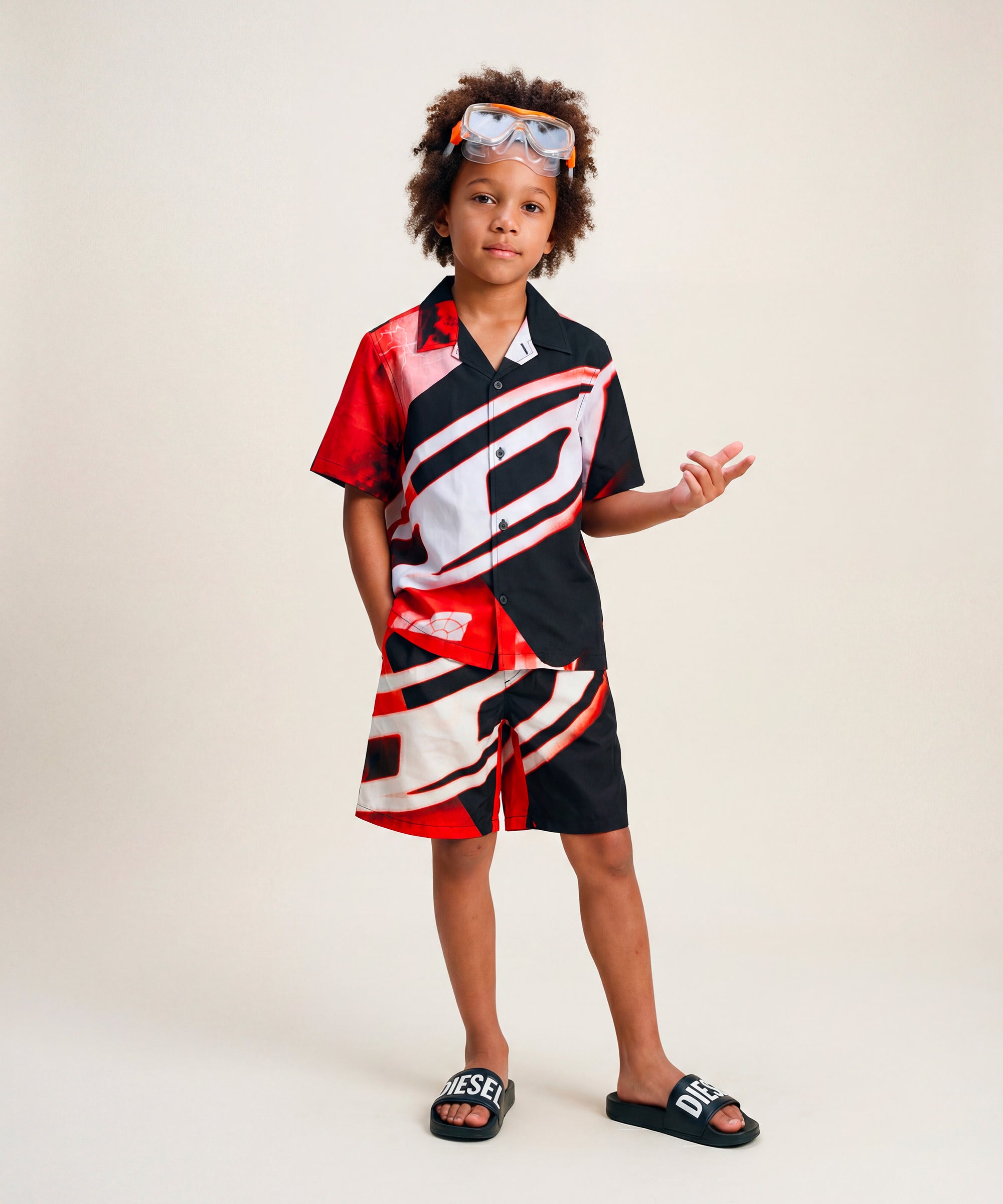 Diesel Kids Ciabatta Nero con Logo Bianco Unisex