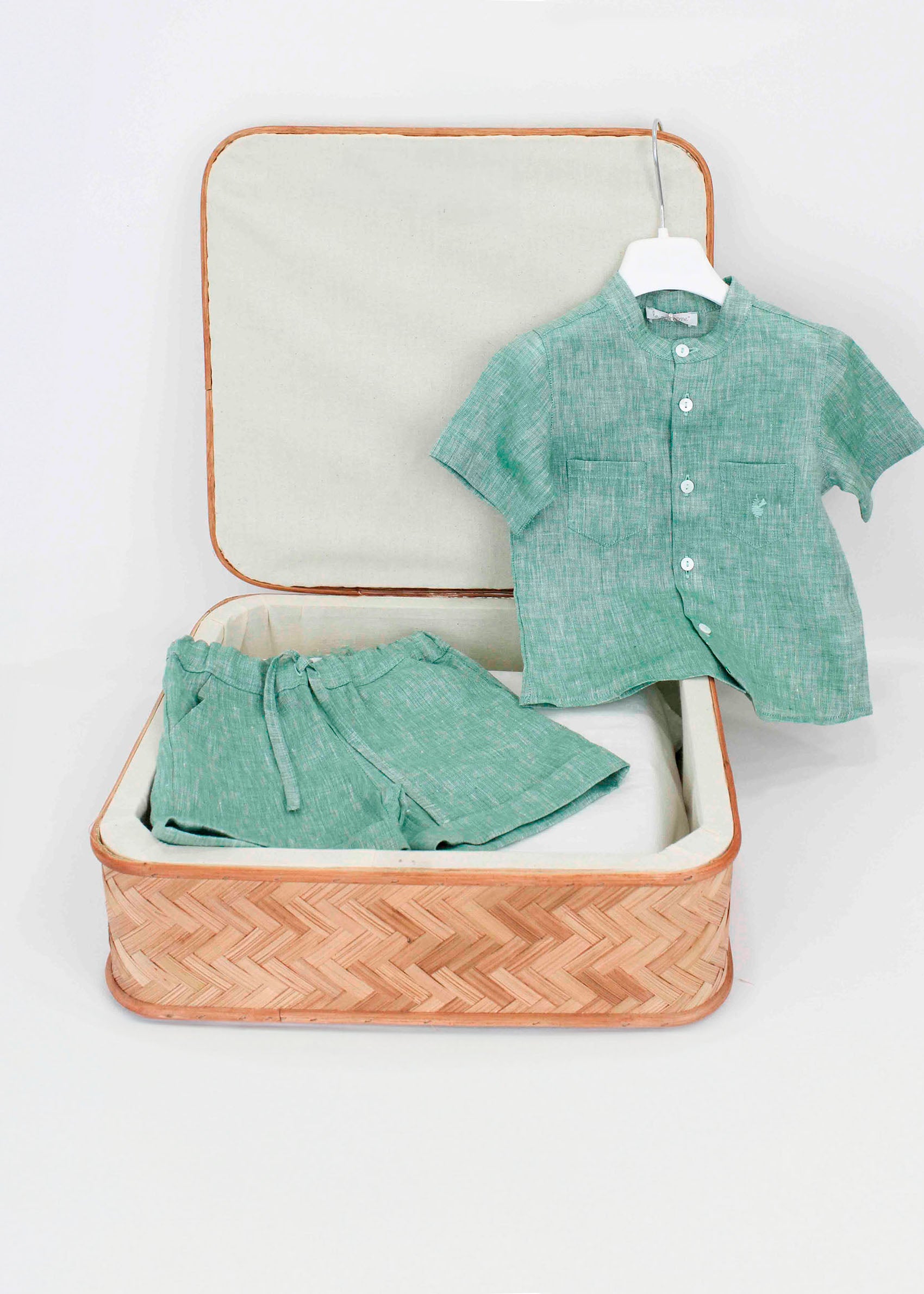 Il Completo Verde per Neonati di Le Coconne, disponibile su Florence Kids, combina stile e confort con un tocco di eleganza naturale. Questo set è composto da una camicia e uno short coordinati, entrambi realizzati in lino di alta qualità. La camicia, nel fresco colore verde, è dotata di colletto classico e dettagli curati, mentre lo short presenta pratiche tasche e un risvolto chic che ne esalta il design. Perfetto per le giornate estive, questo completo non solo veste il neonato con eleganza ma garantisce anche la massima comodità grazie alla morbidezza e alla traspirabilità del lino.