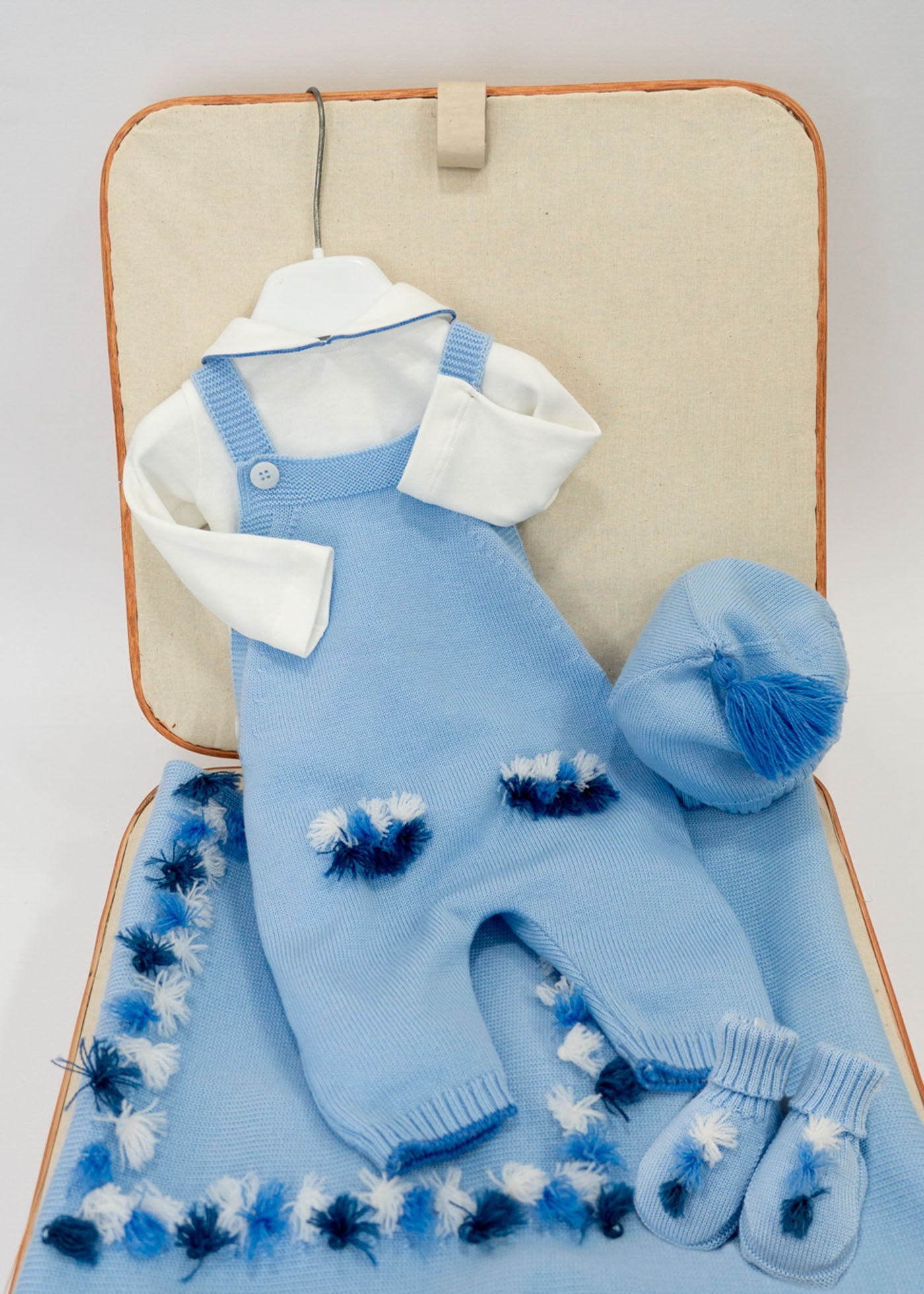 Scopri il delizioso corredino celeste con pagliaccetto per neonati di Le Coconne, un set completo e coordinato, ideale per il tuo piccolo. Questo set include una tutina o pagliaccetto, muffole, cappellino e coperta, tutti realizzati in morbida lana per garantire il massimo comfort e calore. Ogni capo è progettato con cura, con dettagli raffinati come rifiniture a coste, per offrire praticità e stile. Perfetto per i primi giorni del tuo neonato, questo corredino è una scelta elegante e comoda per il tuo bambino, rendendolo il regalo ideale o l'acquisto perfetto per il corredino.