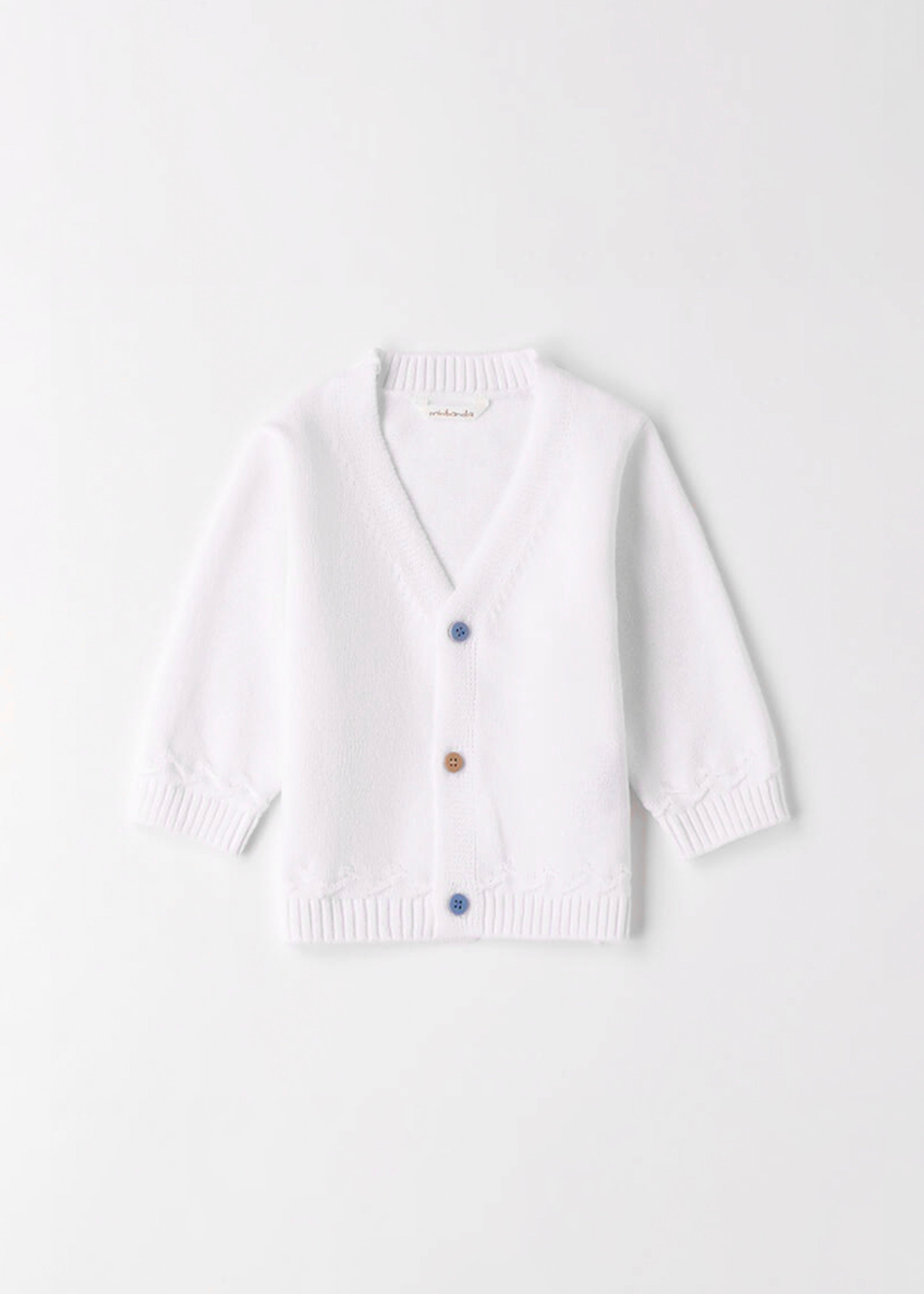 Cardigan Minibanda per neonato realizzato in 100% cotone, perfetto per offrire comfort e traspirabilità durante le mezze stagioni e le fresche giornate estive. Il modello, in elegante tinta unita bianca, presenta una classica apertura frontale con bottoncini e polsini a costine sul fondo e alle maniche, che assicurano una vestibilità comoda e avvolgente. Dal design semplice e raffinato, questo cardigan è un capo versatile e facilmente abbinabile, ideale per completare con stile sia outfit casual che eleganti. Un must-have nel guardaroba del tuo bambino.