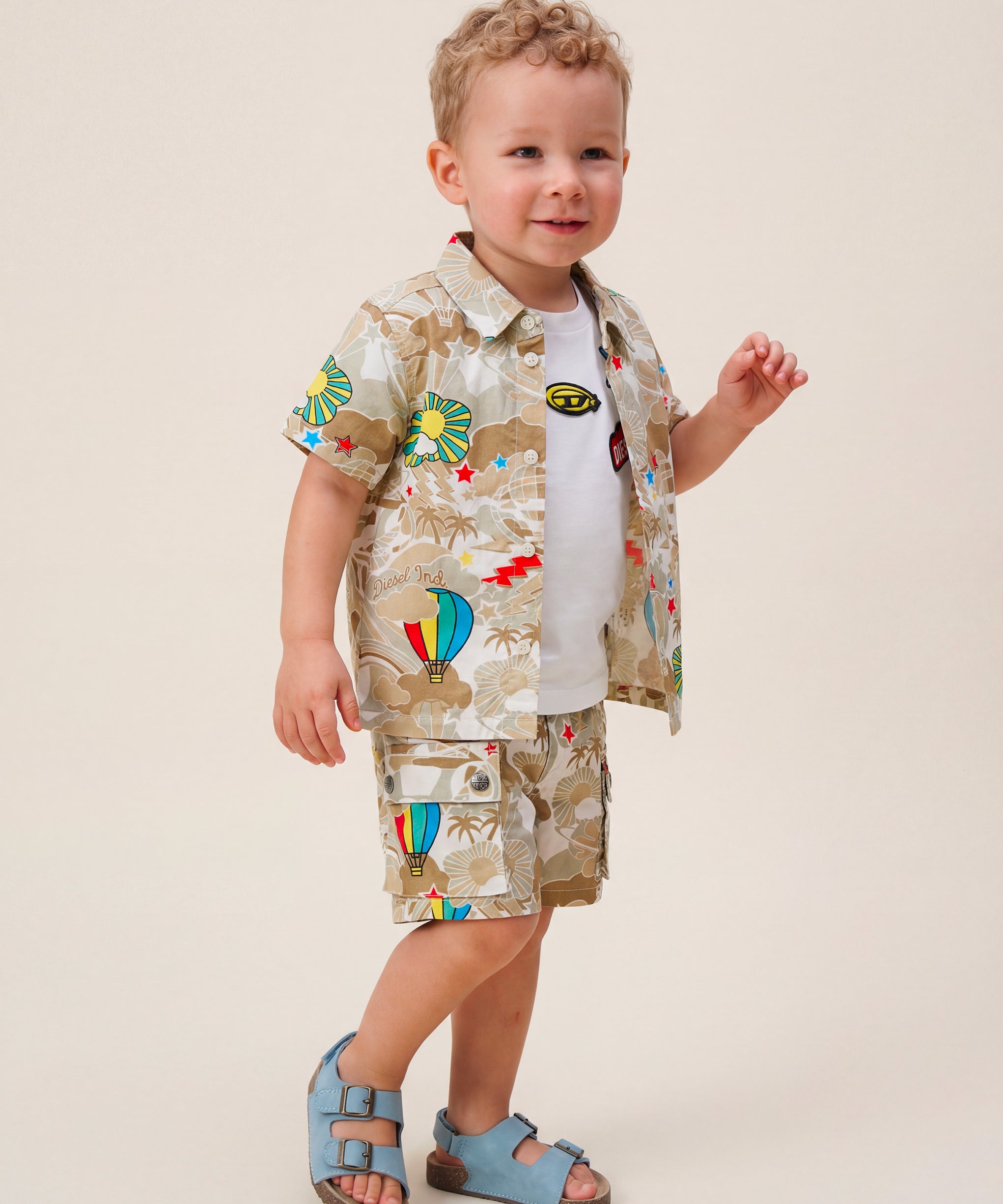 Diesel Kids Short Sabbia con Fantasia e Tasconi per Neonati