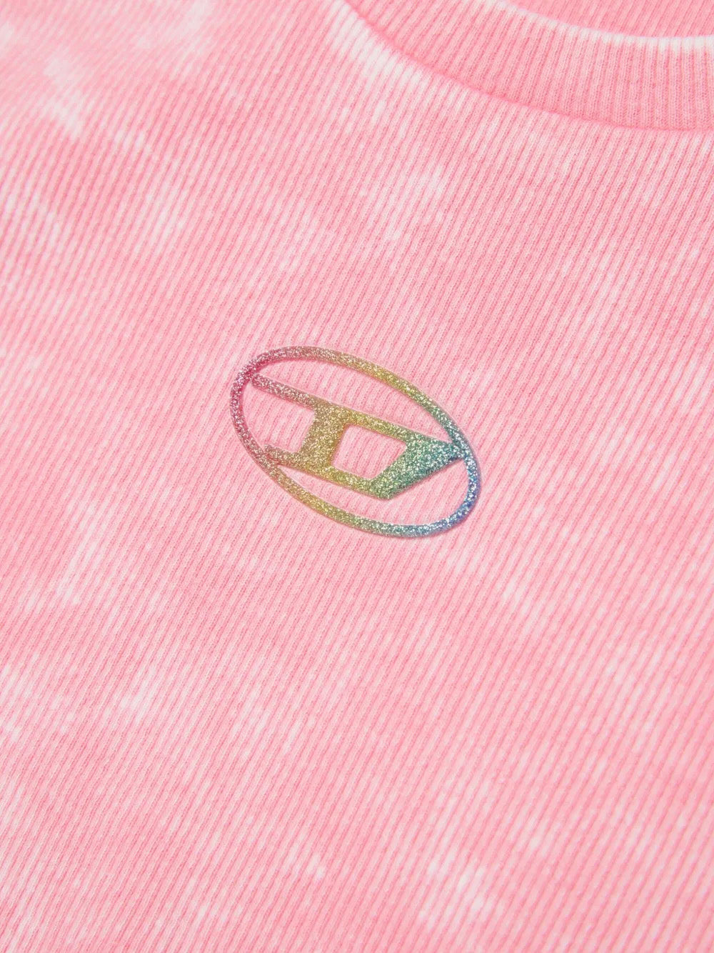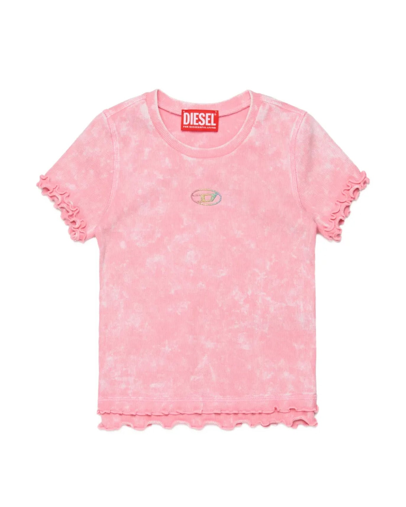 Diesel Kids T-Shirt Rosa Sfumata a Costine con Logo in Rilievo Multico - Florence Kids