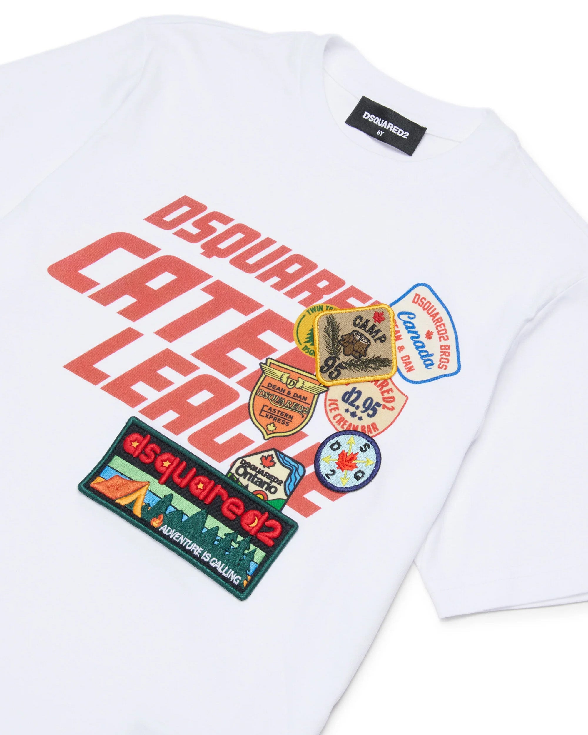 Dsquared2 Kids T-shirt Bianca con Stampa e Patch Applicate per Bambini