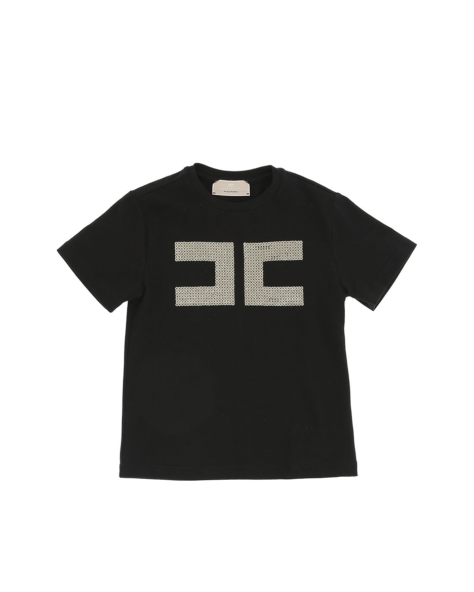 Elisabetta Franchi La Mia Bambina T-shirt Nera con Maxi Logo in Strass per Bambine