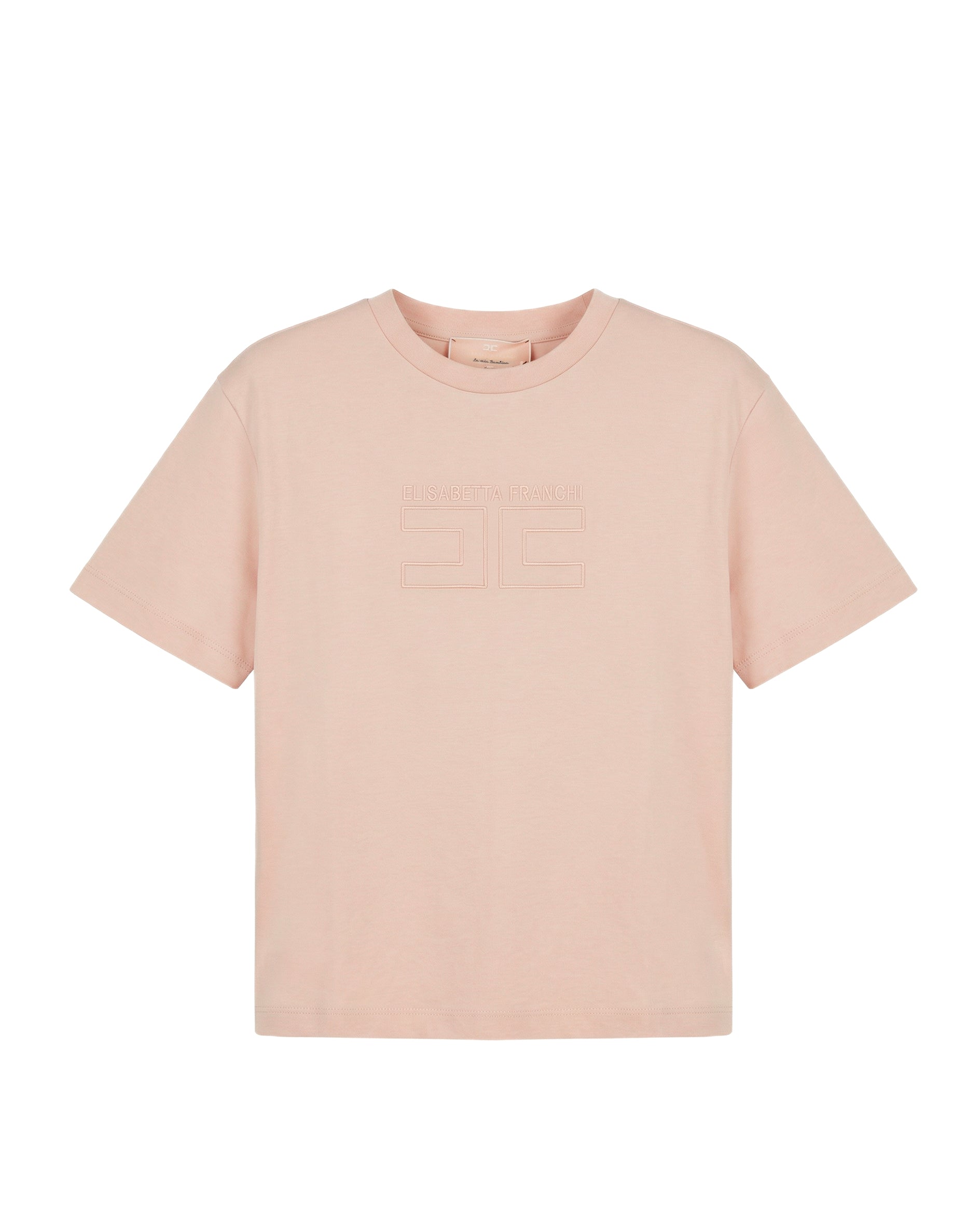 Elisabetta Franchi La Mia Bambina T-shirt Rosa con Ricamo Logo per Bambine realizzata in morbido cotone, pensata per offrire comfort e stile durante tutta la giornata. Il design essenziale in delicata tonalità rosa è valorizzato dall’iconico logo EF in rilievo tono su tono sul davanti, dettaglio raffinato che rende il capo elegante e riconoscibile.