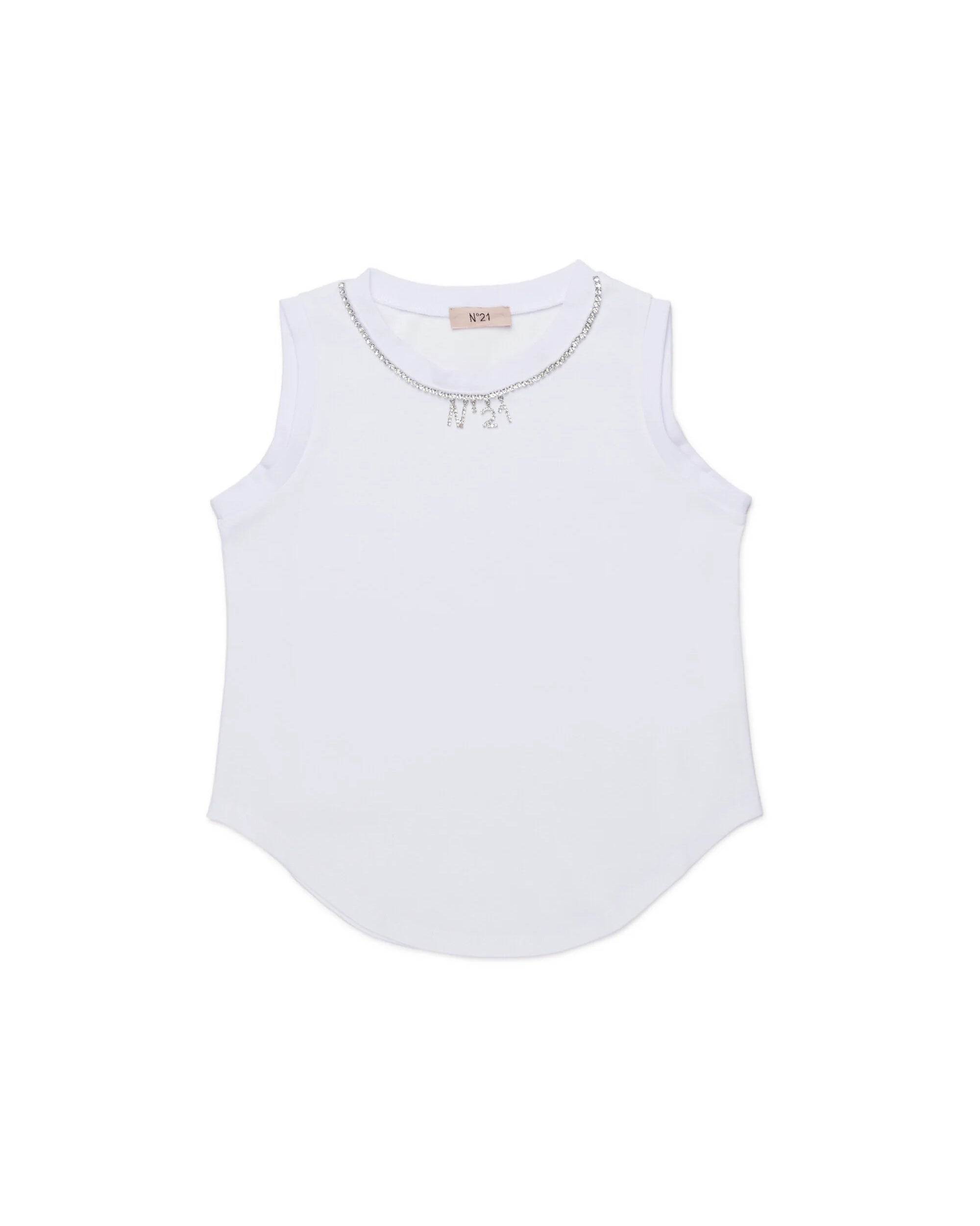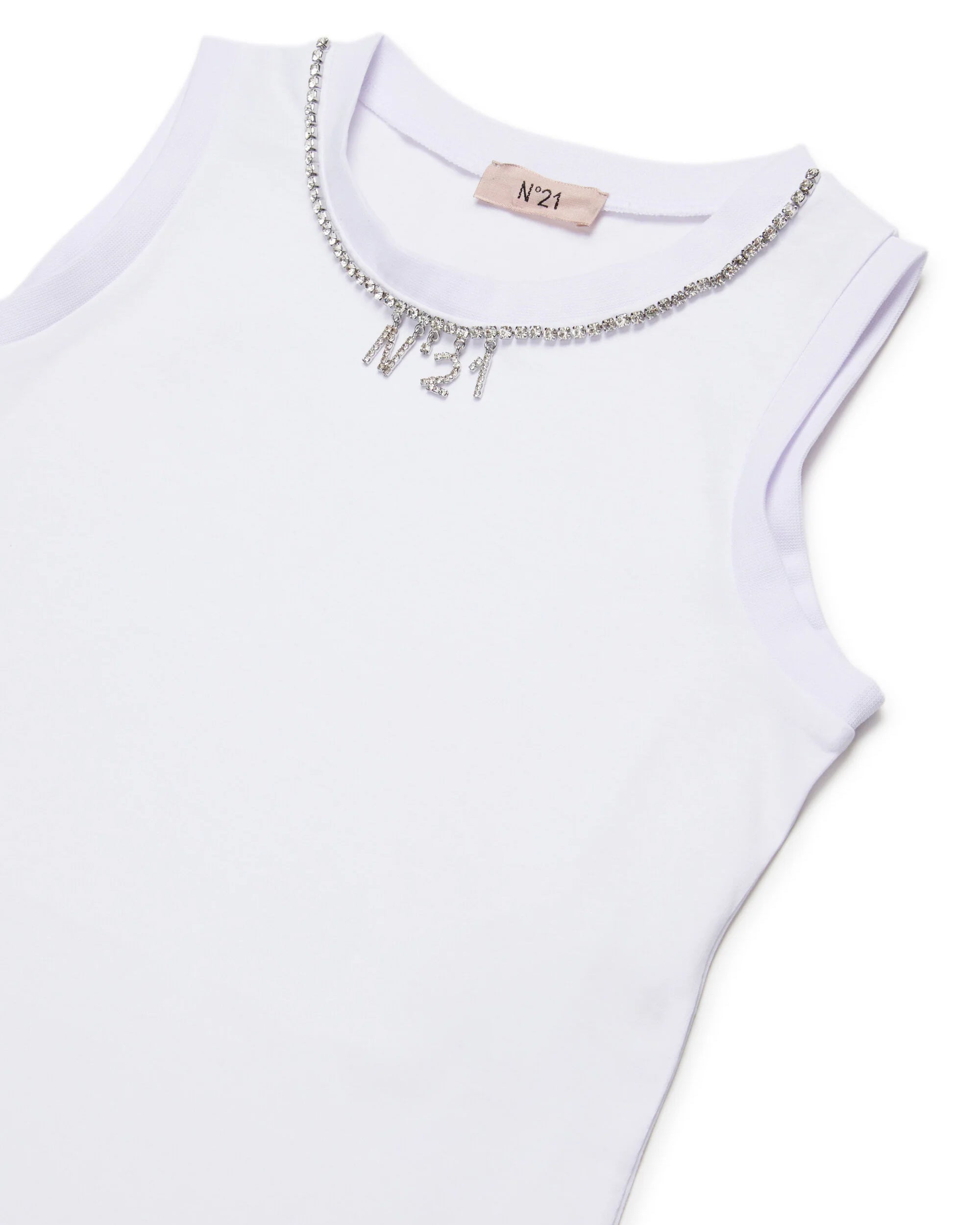 N21 Kids Canotta Bianca con Dettagli Logo e Strass per Bambine