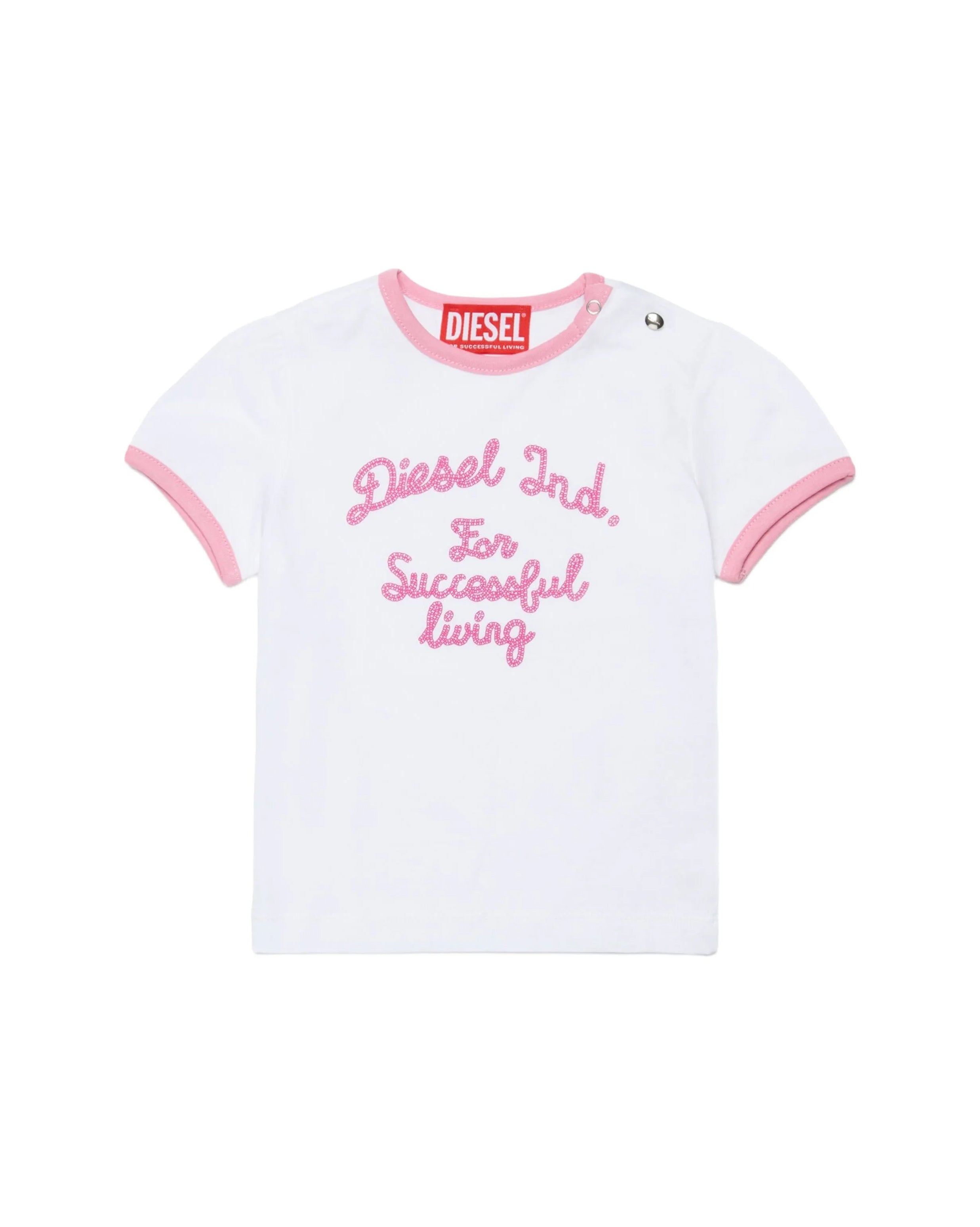 Diesel Kids T-Shirt Bianco/Rosa con Stampa Logo per Neonate - Florence Kids