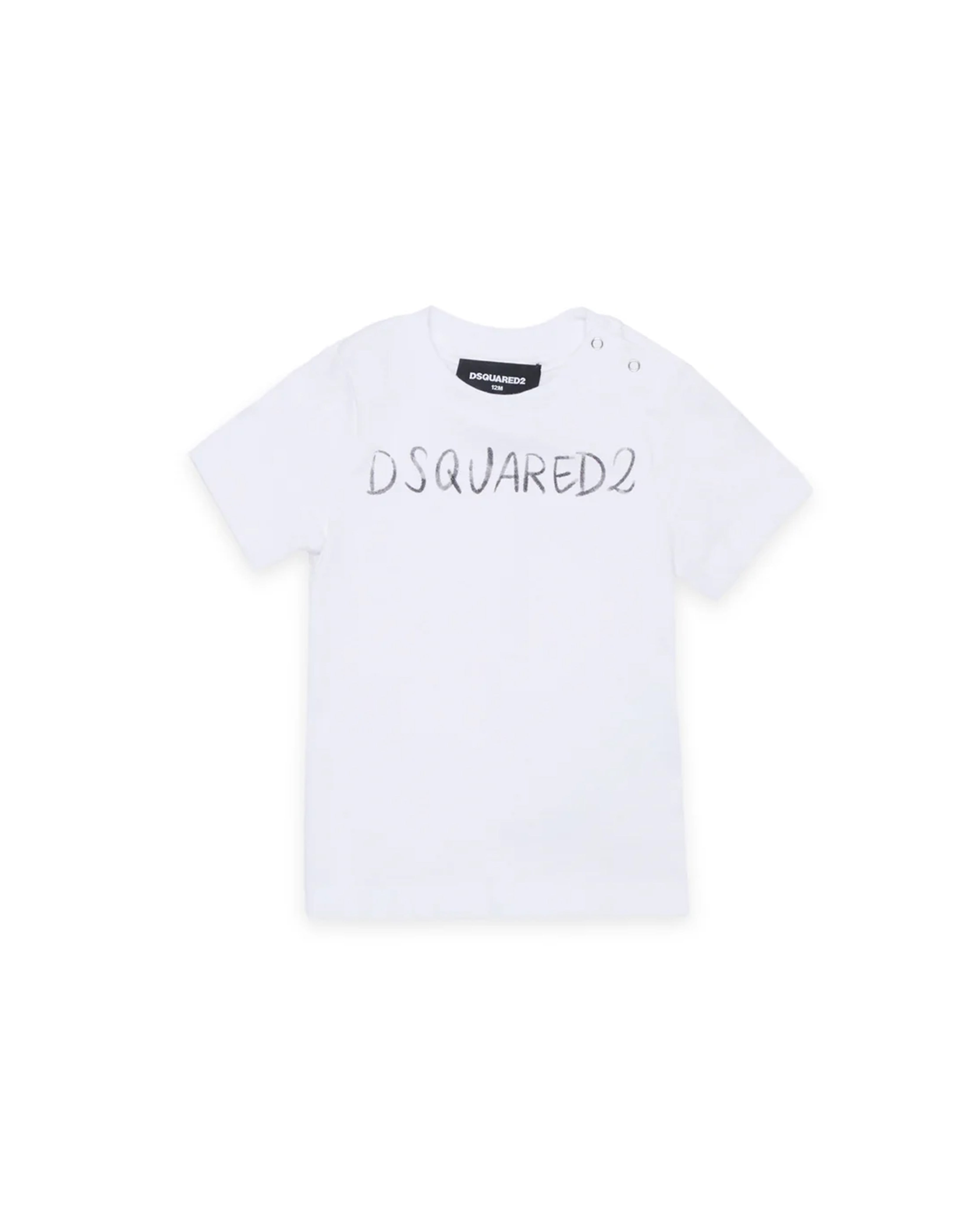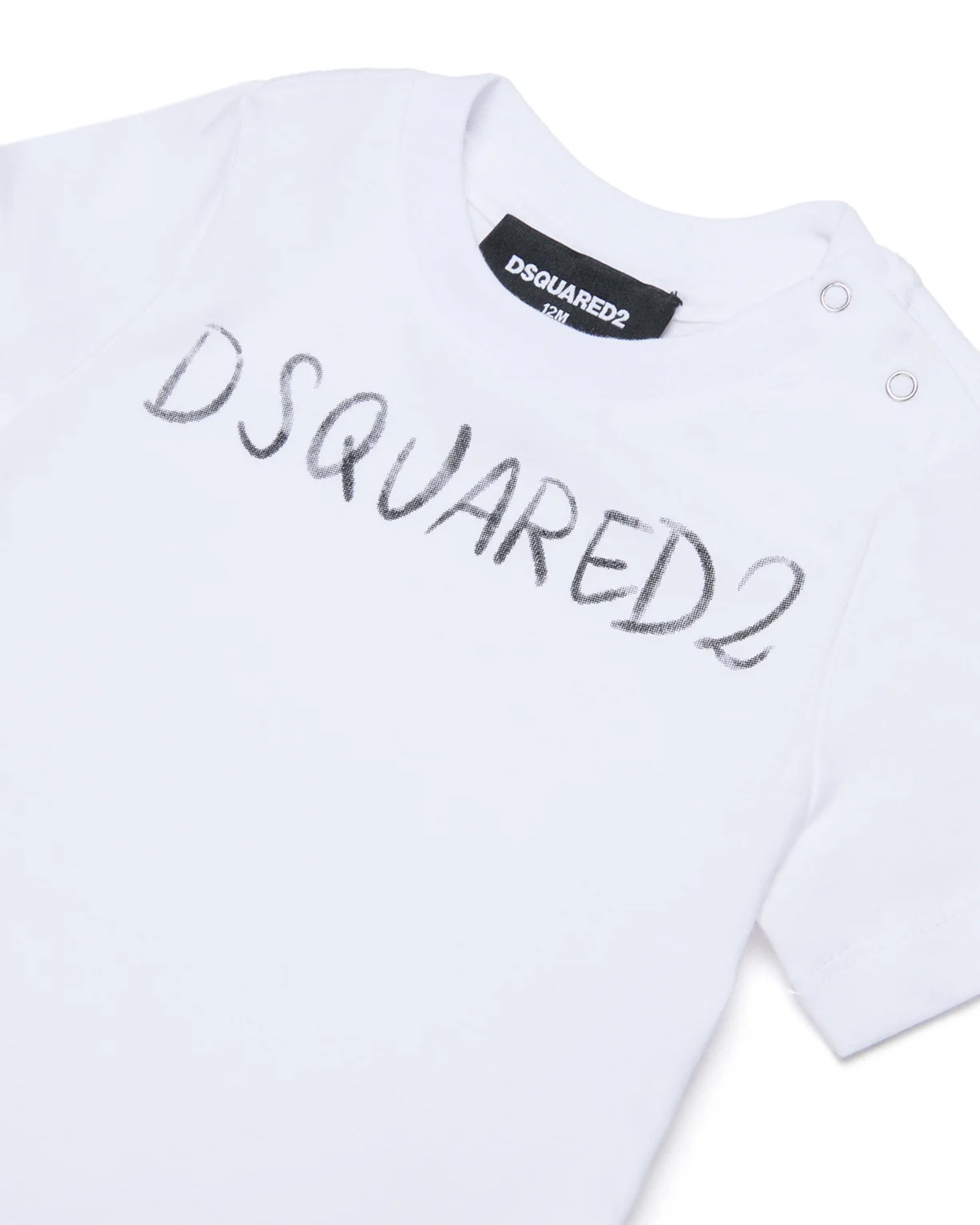 Dsquared2 Kids T-Shirt Bianco con Logo e Bottoni per Neonati