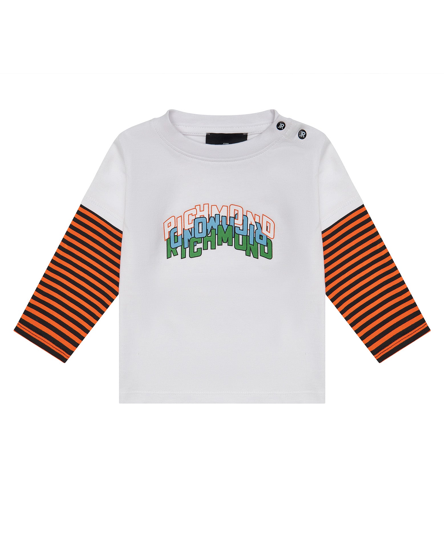 John Richmond Kids T-Shirt Bianco con Maniche a Contrasto per Neonati