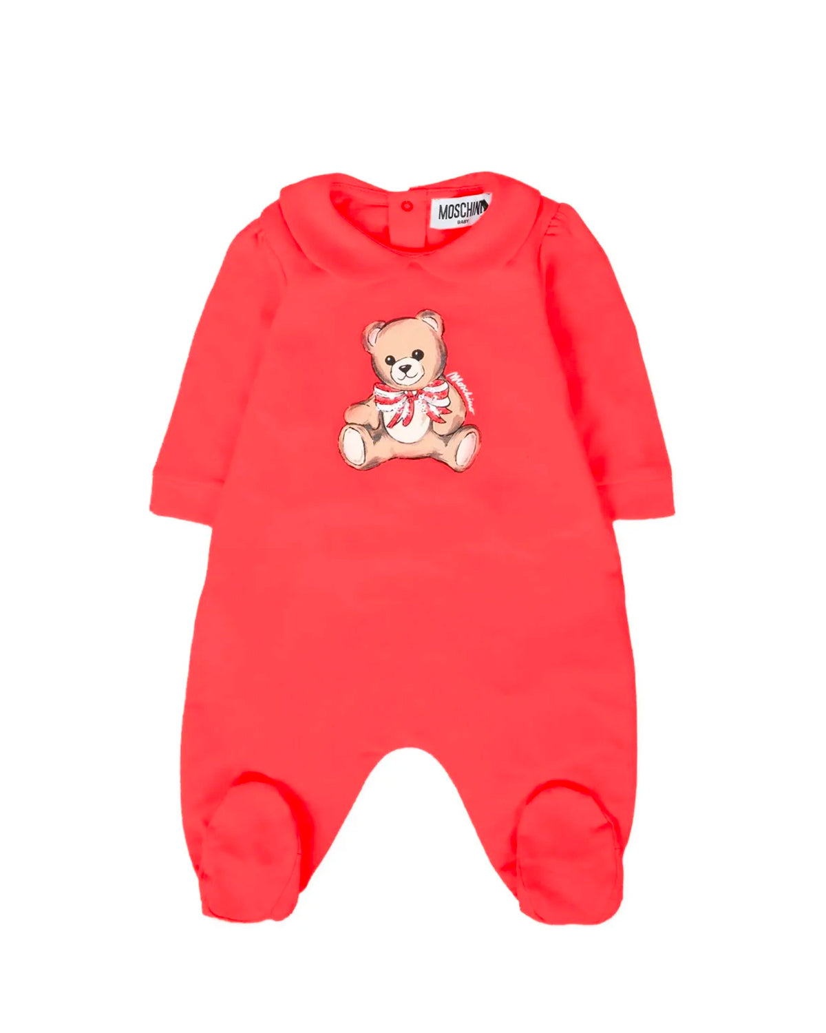 Moschino Kids Tutina Poppy Red con Stampa Teddy per Neonate - Florence Kids