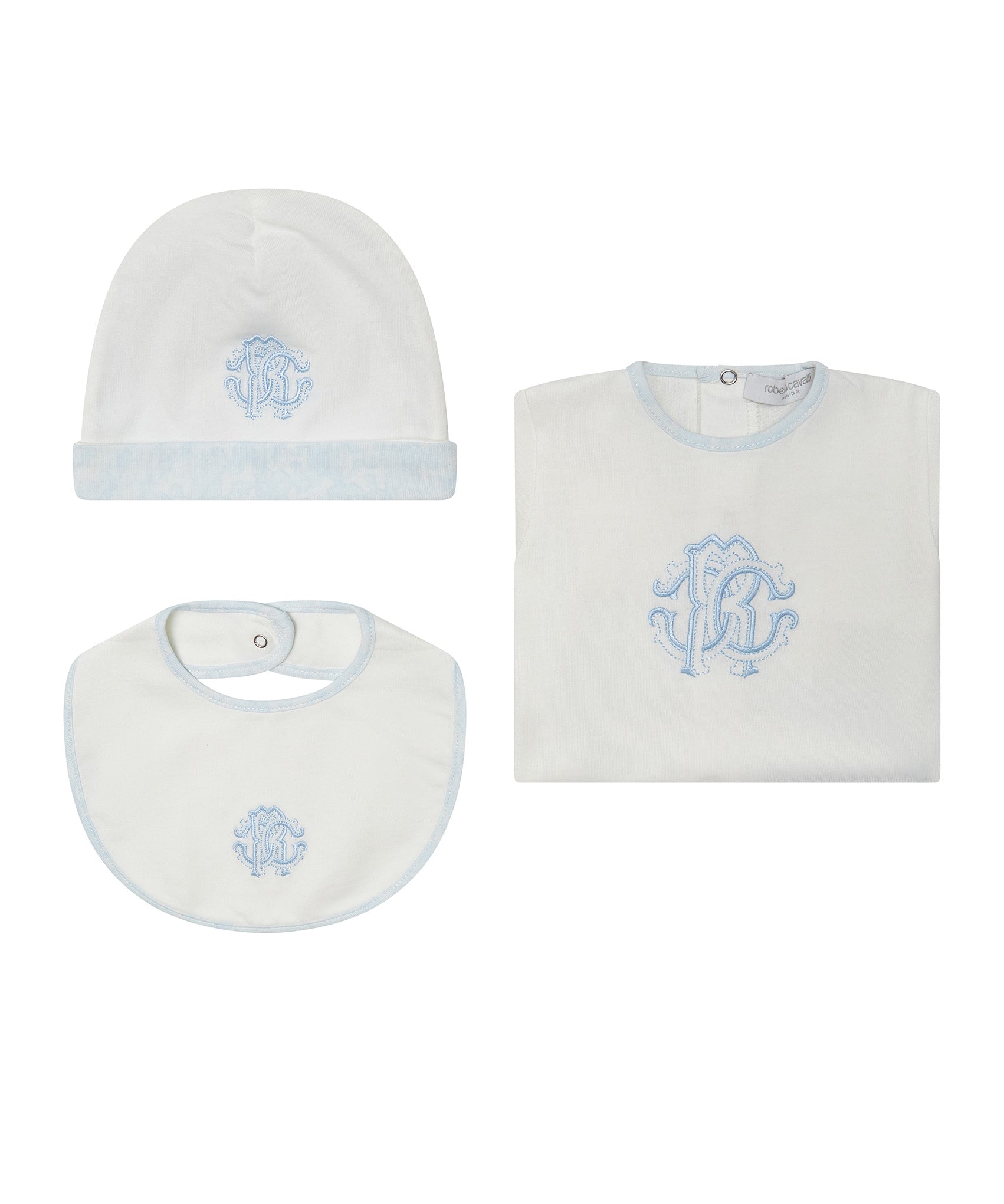 Moschino Kids Set Pagliaccetto+Cappello Celeste per Neonati