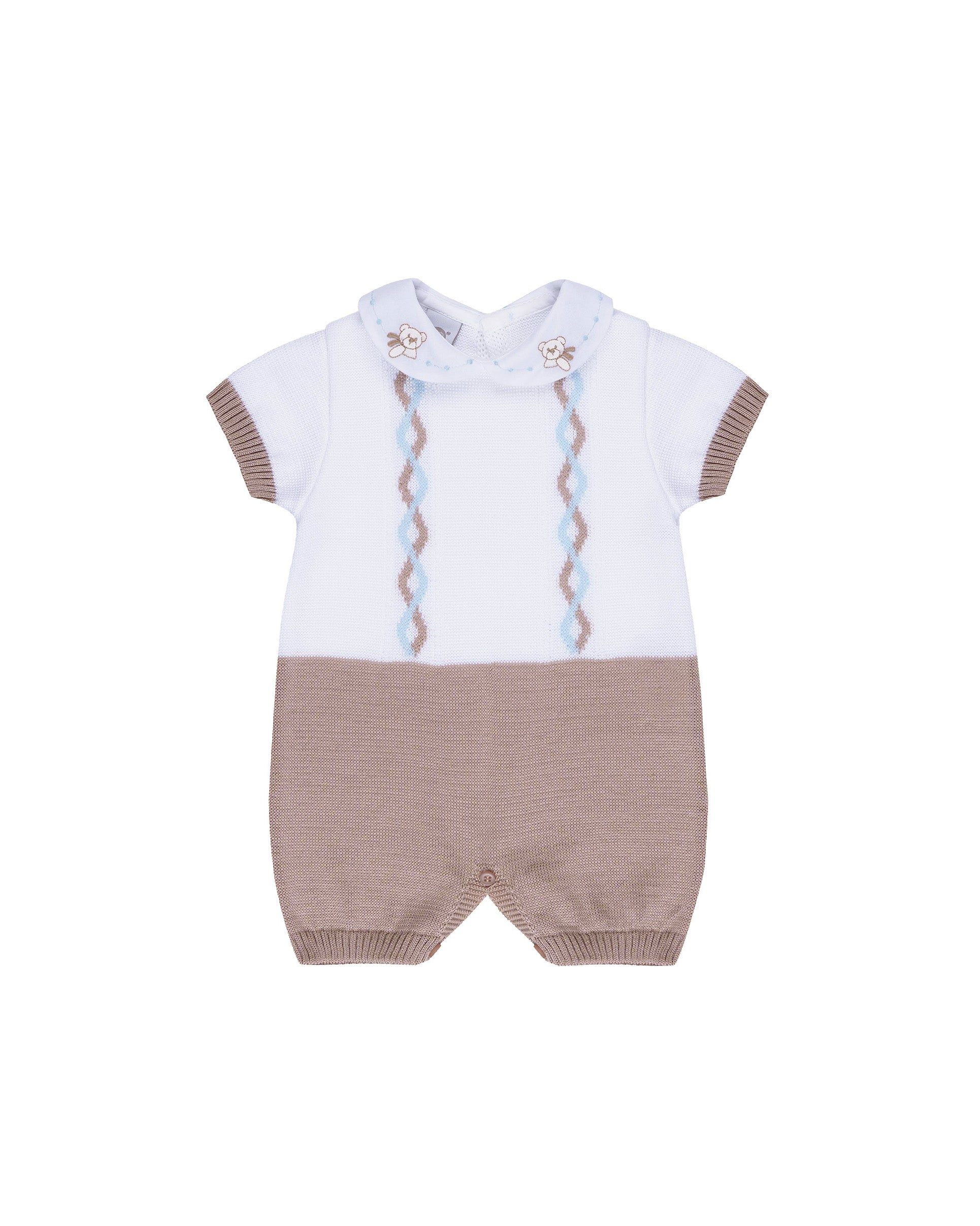 Marlù Pagliaccetto Bianco/Noce e Dettagli Azzurro con Colletto Ricamato per Neonati