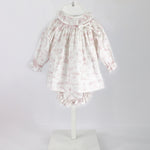 Deolinda Abito con Culotta con Bianco con Fantasia Rosa per Neonate - Florence Kids