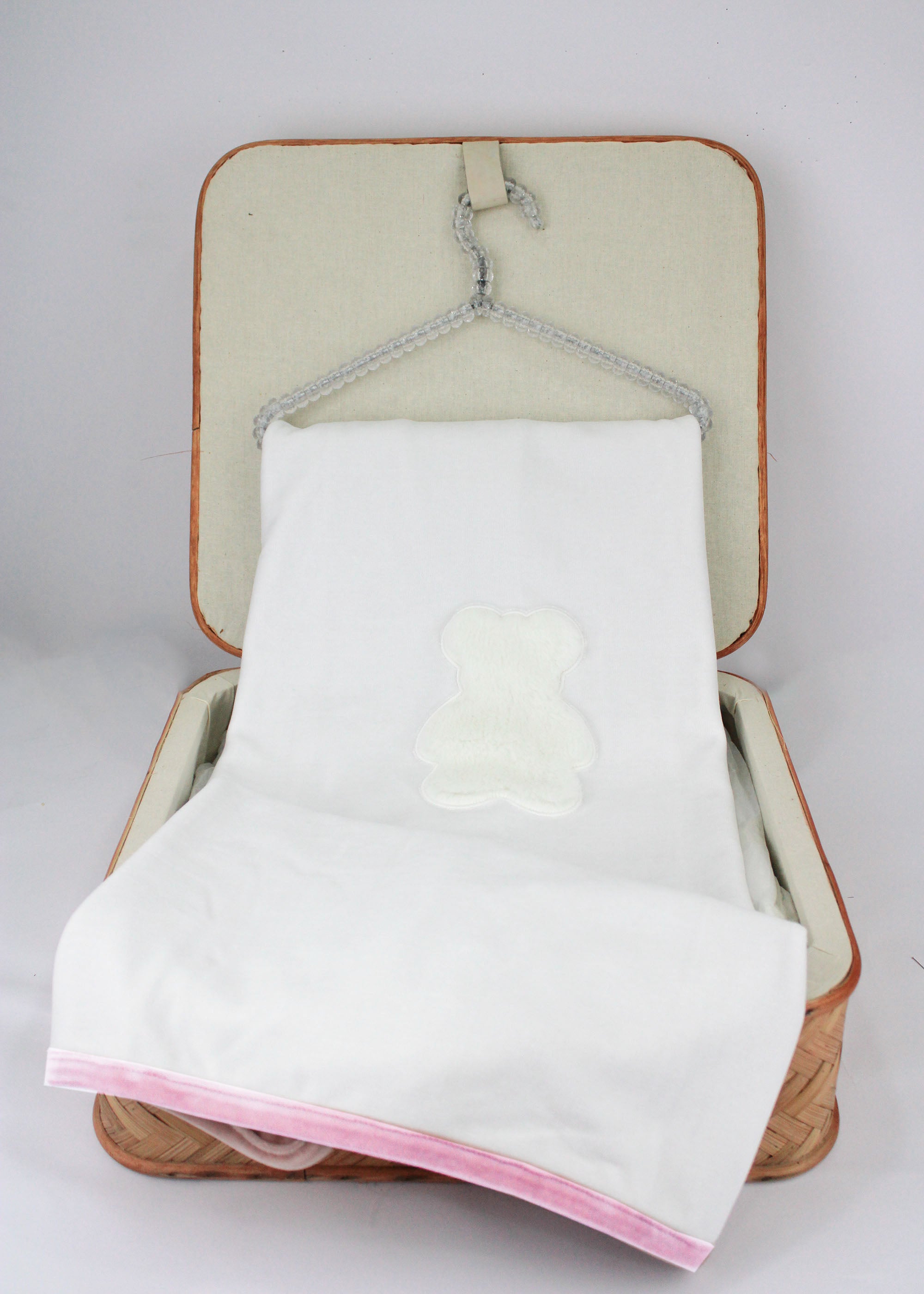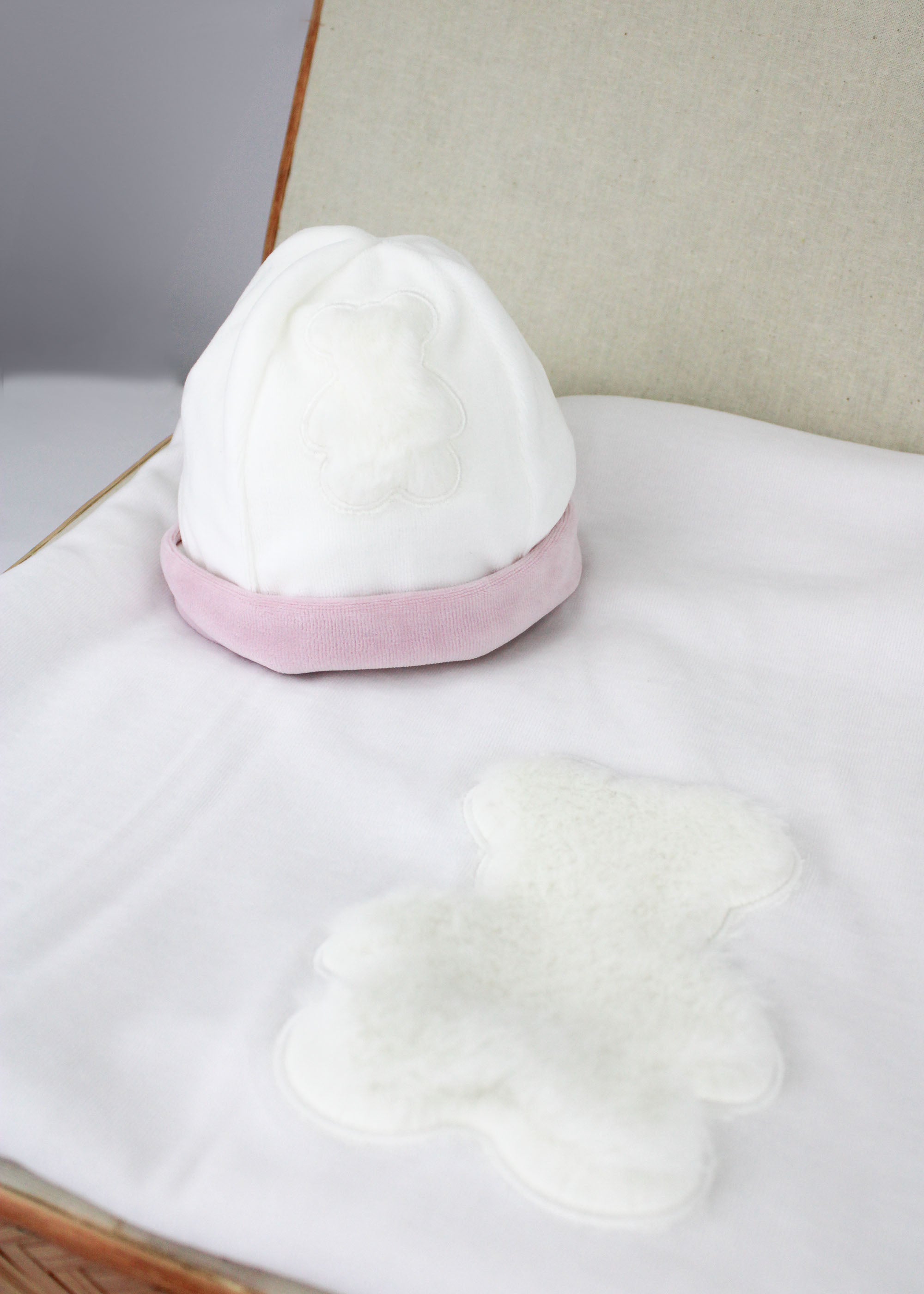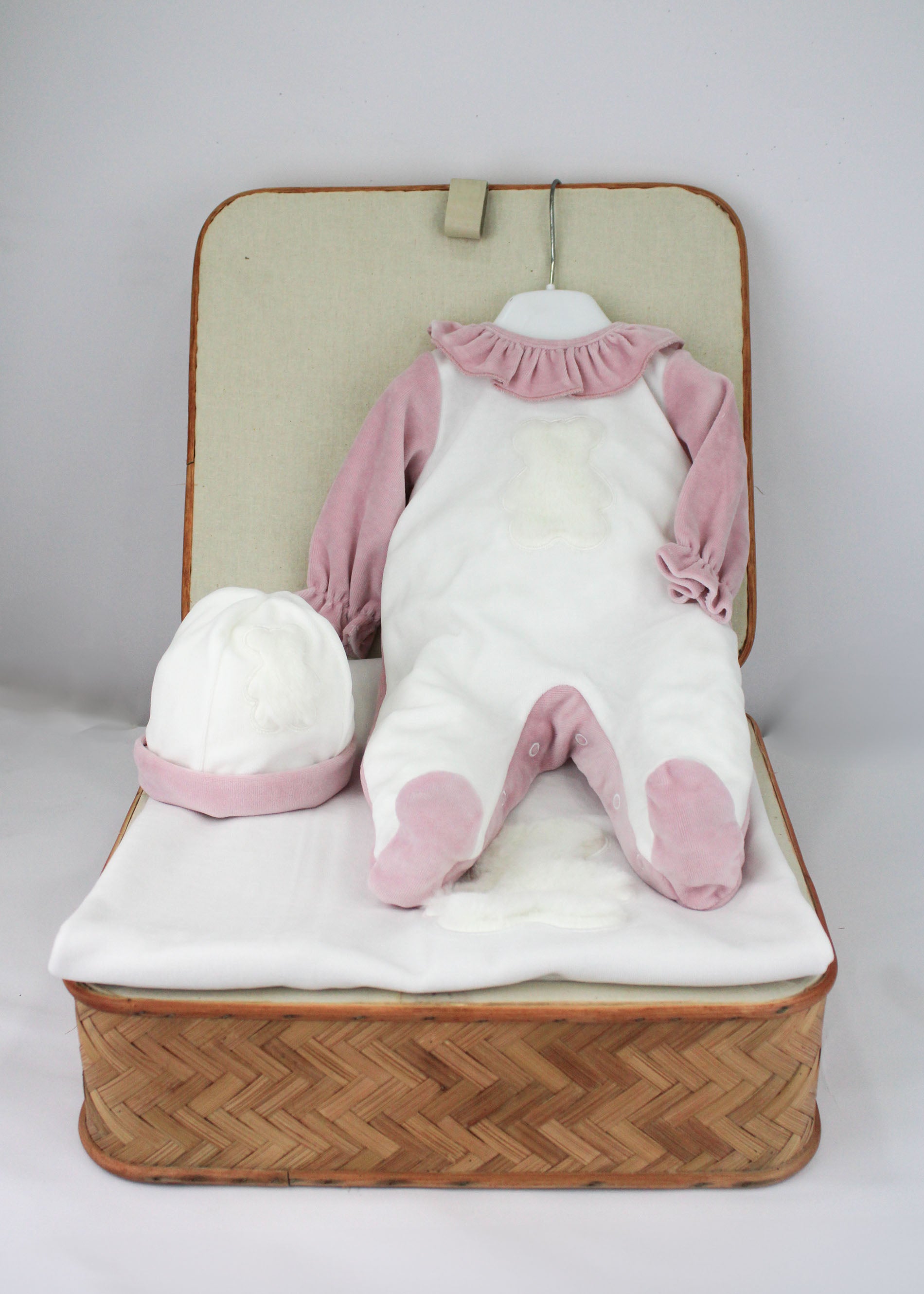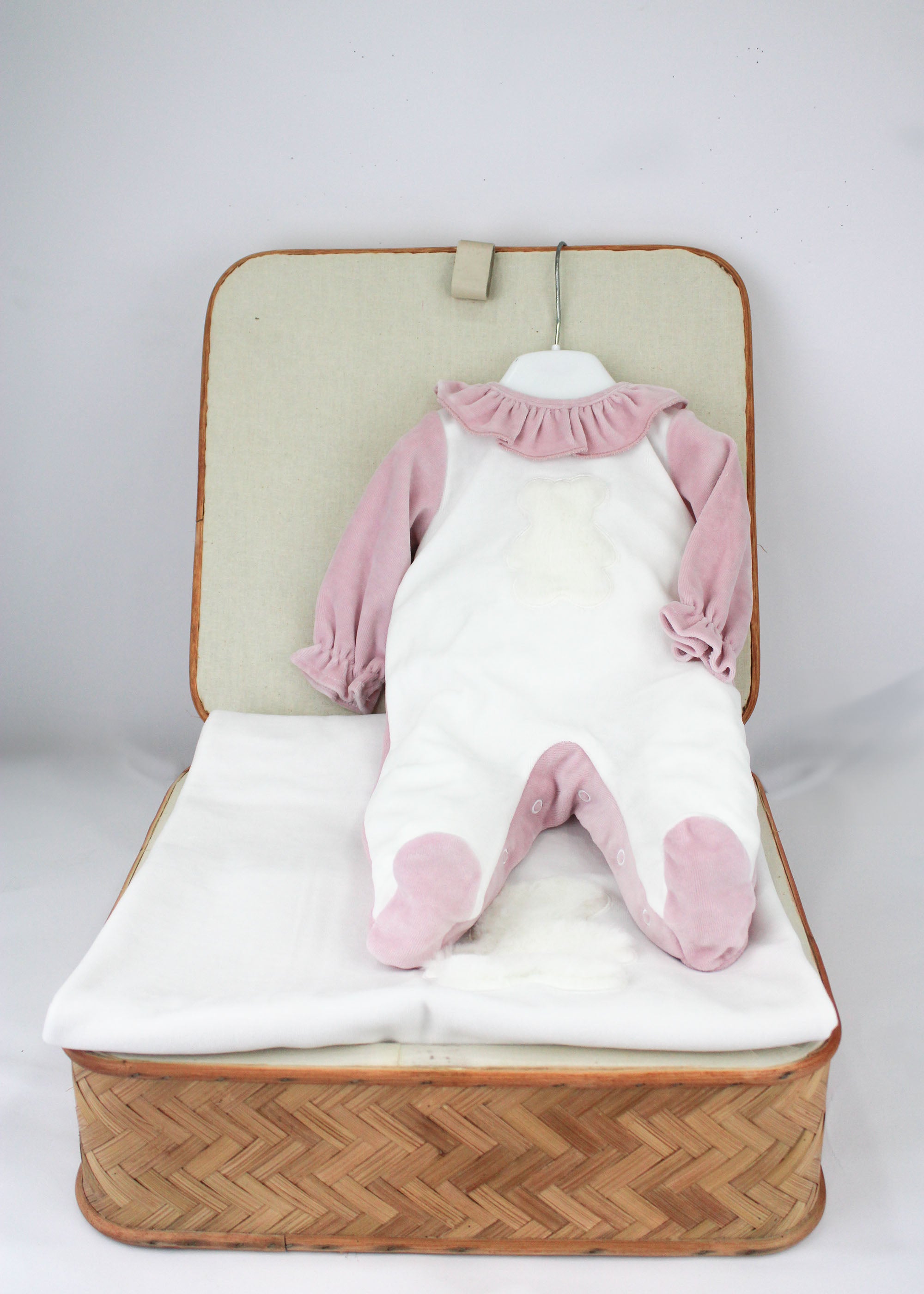 Il completo Deolinda per neonate in rosa e bianco è un set completo e tenero che offre comfort e stile al tuo piccolo. Include una tutina in ciniglia con colletto a contrasto, cappellino abbinato con orsetto ricamato, e una copertina in morbida ciniglia con orsetto e bordo a contrasto. I dettagli delicati e i ricami di alta qualità rendono questo set perfetto per il tuo amore, un must-have per ogni neonato. Eleganza e comfort si uniscono per creare un corredino irresistibile, ideale per le prime coccole.