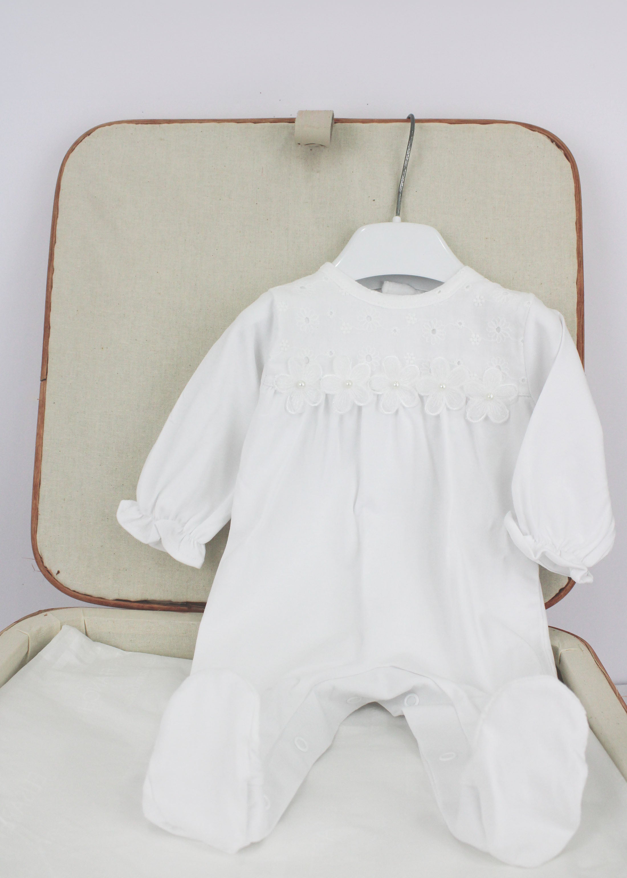 Deolinda Tutina Bianca con Ricami Fiori per Neonate