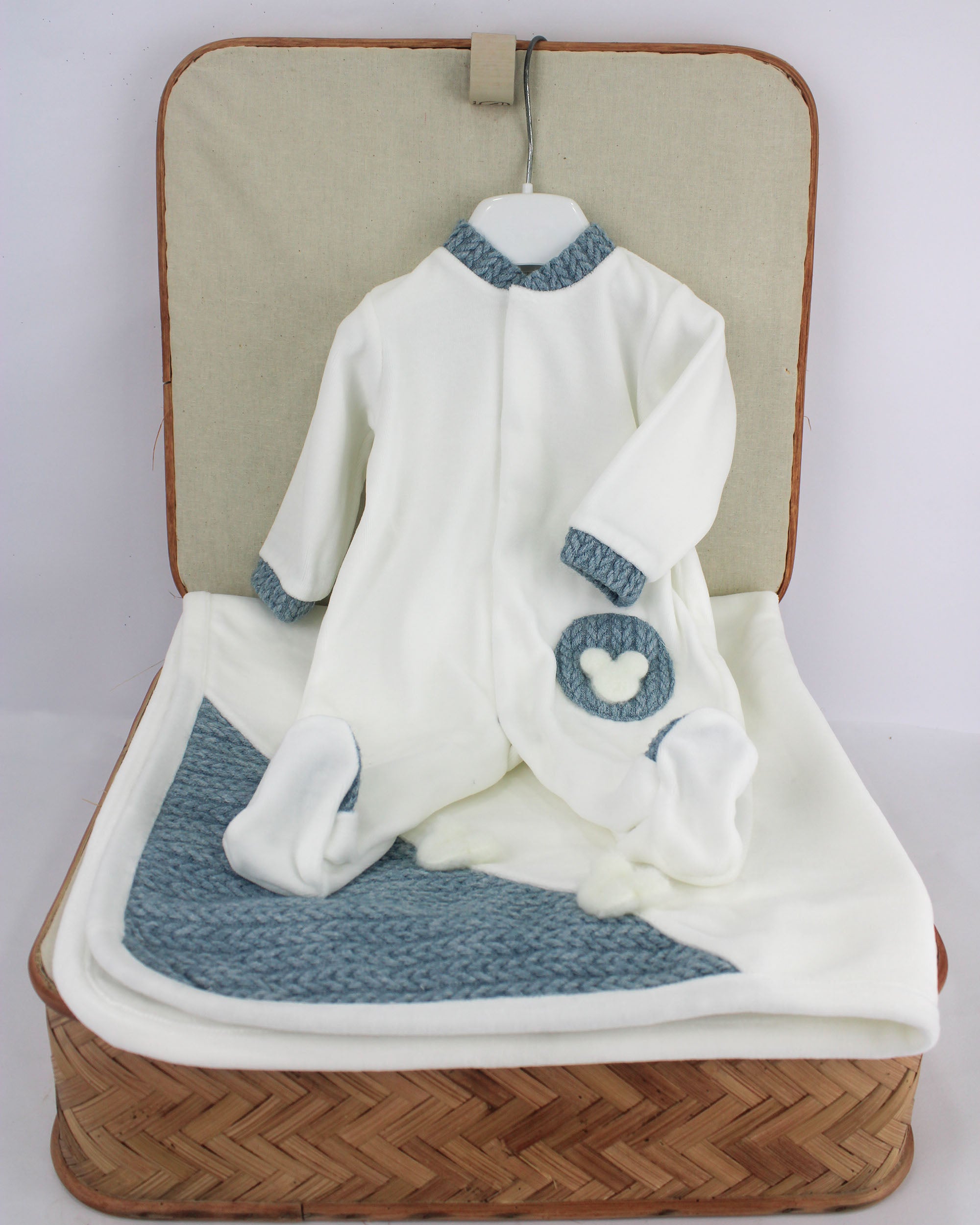 Deolinda Tutina Bianca/Denim con Teddy per Neonati