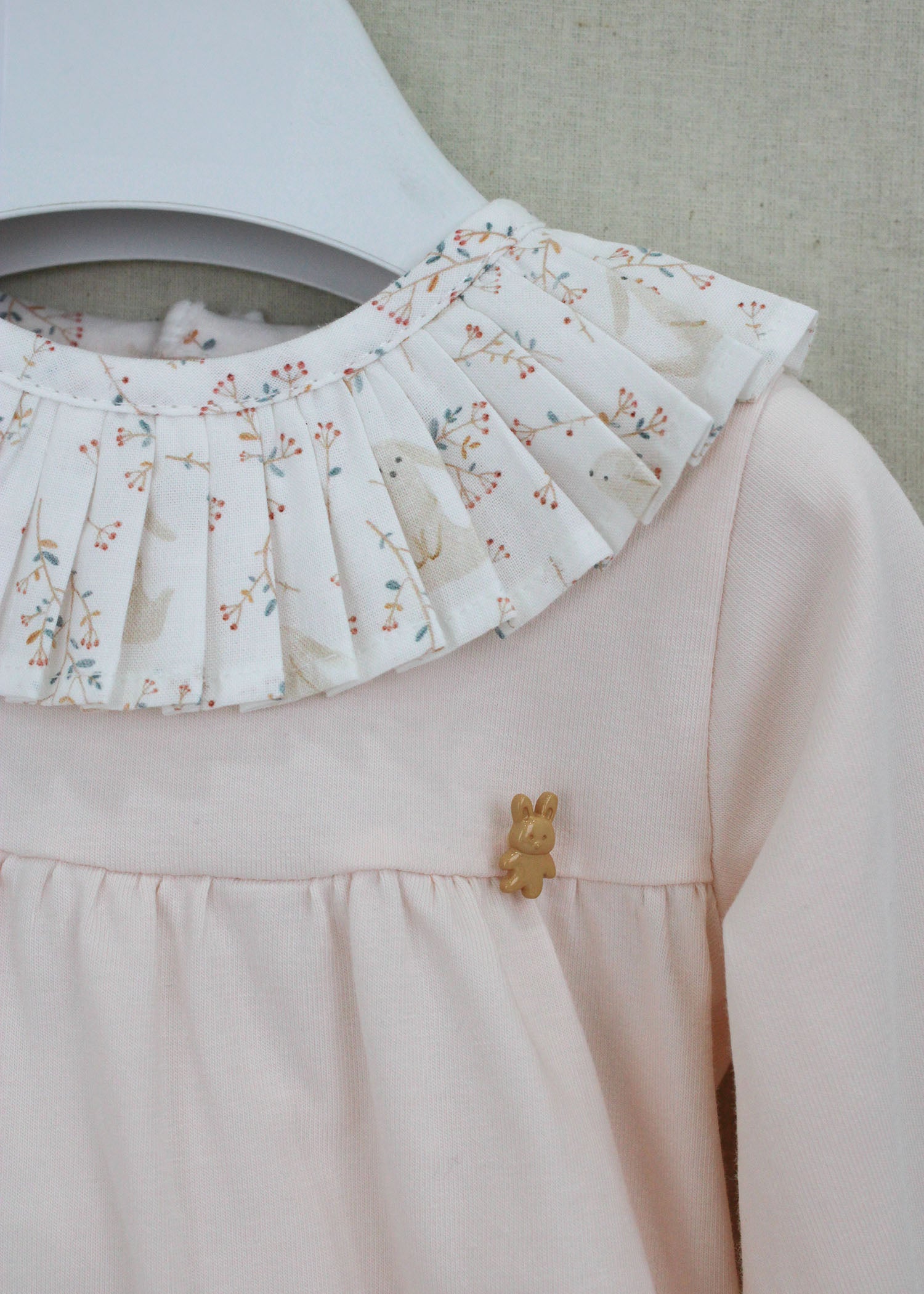 La tutina Cipria di Deolinda per Neonate, disponibile su Florence Kids, è un capo adorabile e pratico, perfetto per i primi mesi di vita. Questa tutina a maniche lunghe è realizzato in un cotone fresco e leggero, ideale per mantenere i neonati comodi durante il gioco. Il design include un colletto decorato a contrasto e un dolce orsachiotto che aggiunge dettagli eleganti. I piedini sono perfetti per proteggere i piccoli mentre la chiusura a bottoni facilita l'indossaggio. Abbinato al coordinato è la scelta perfetta per un outfit estivo completo e chic.