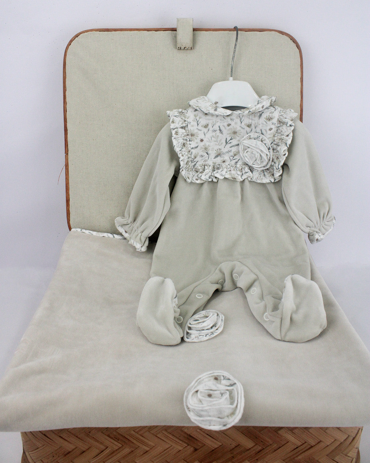 Deolinda Tutina Fango con Rosa per Neonate - Florence Kids