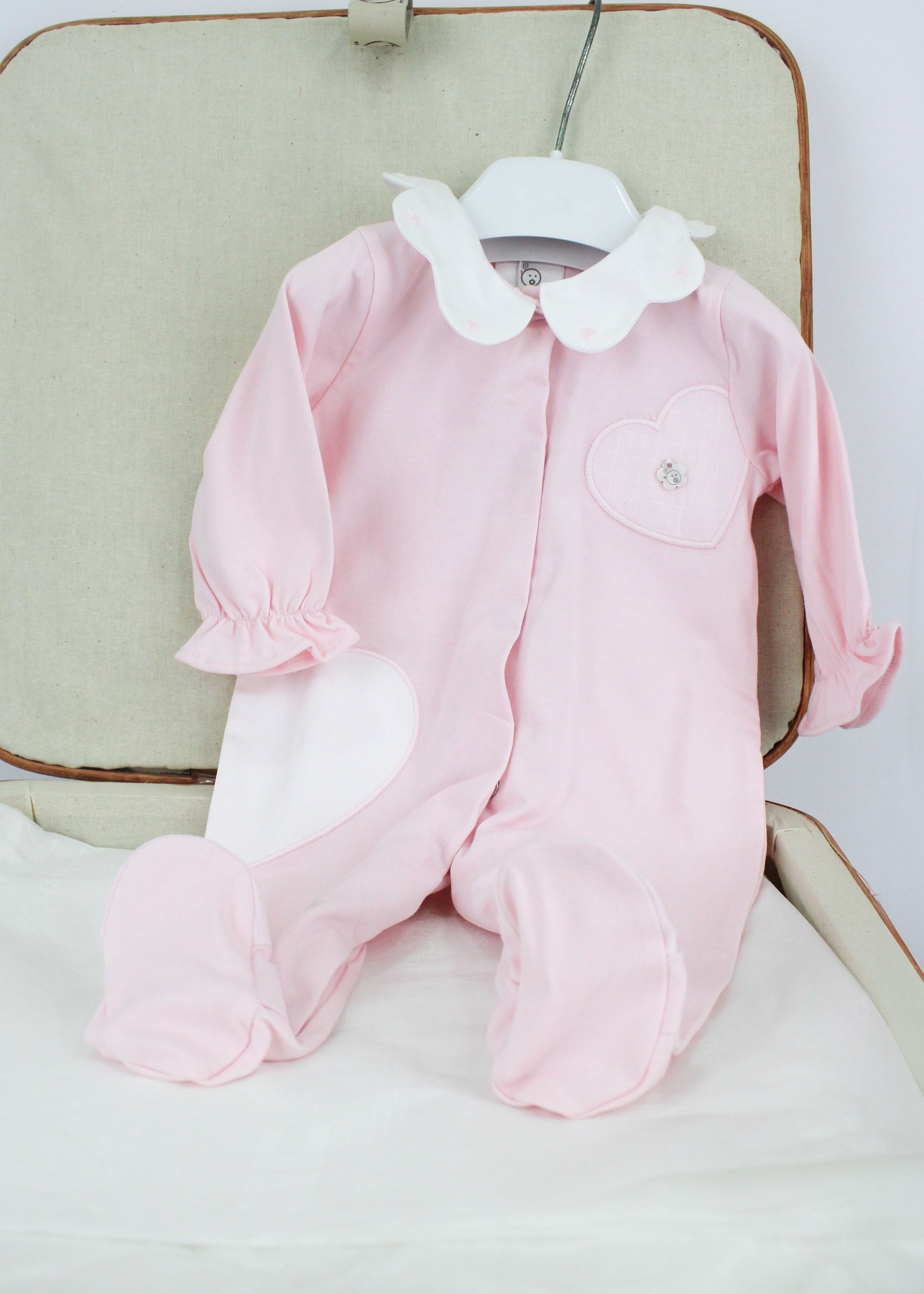 Deolinda Tutina Rosa Ricamo Cuori per Neonate - Florence Kids