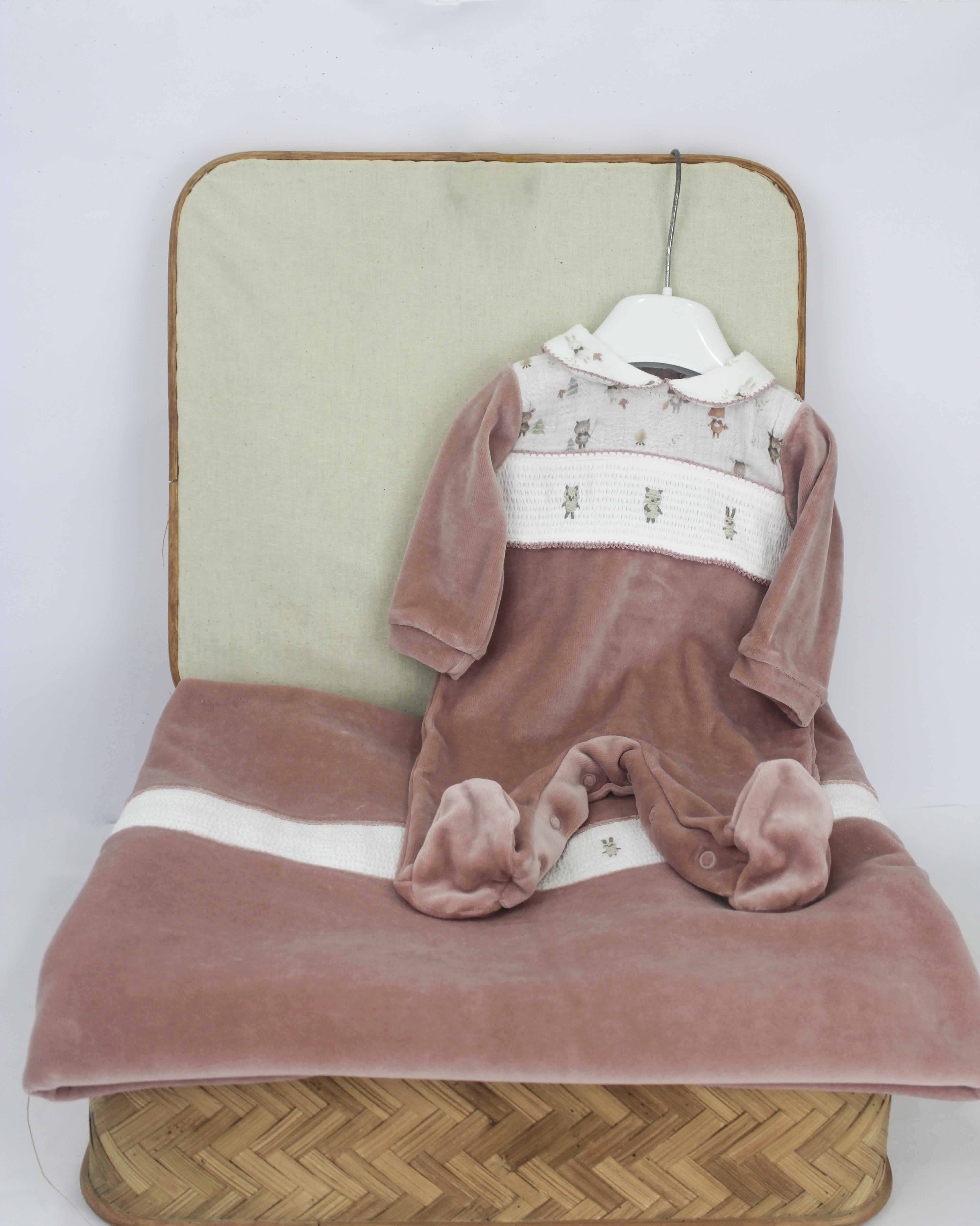 Deolinda Tutina Terracotta con Ricami per Neonate